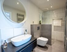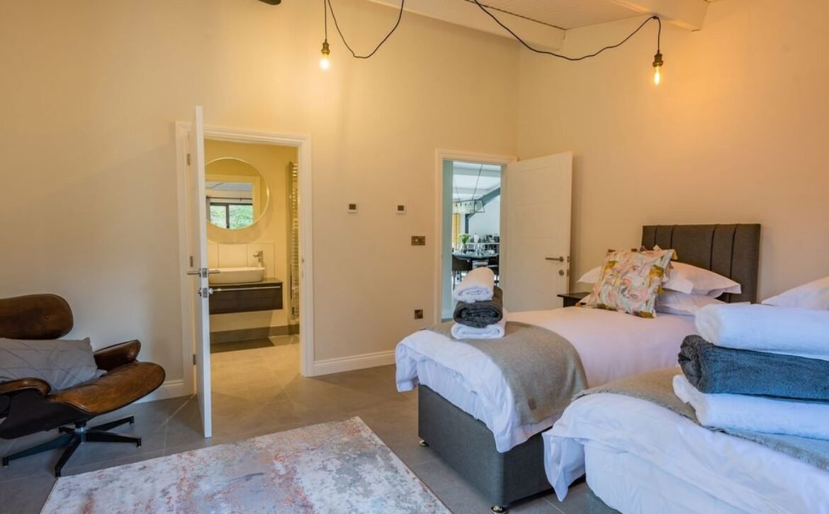 - Three bedrooms: 1 x king size with en-suite free-standing bath, walk-in shower, basin, heated towel rail and WC, 1 x king-size (zip/link, can be a twin on request) with en-suite bath, walk-in shower, basin, heated towel rail and WC, 1 x king-size with en-suite shower, basin, heated towel rail and WC