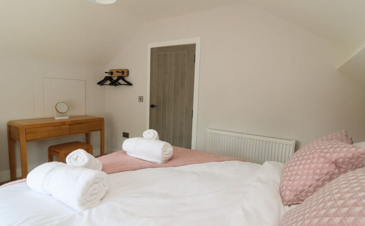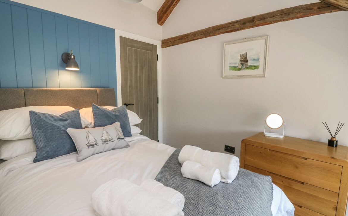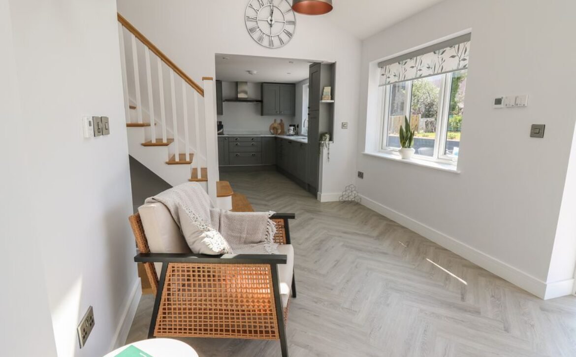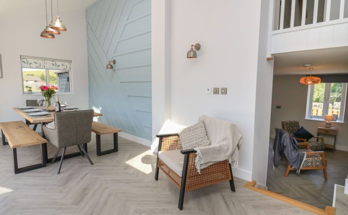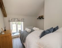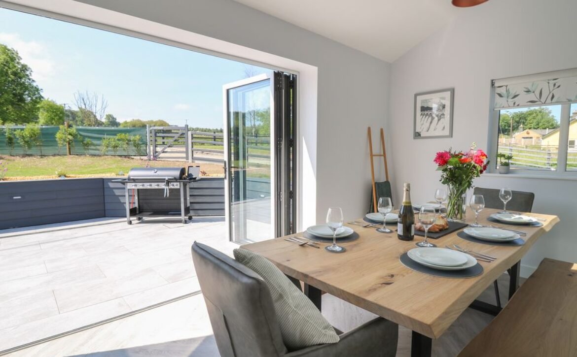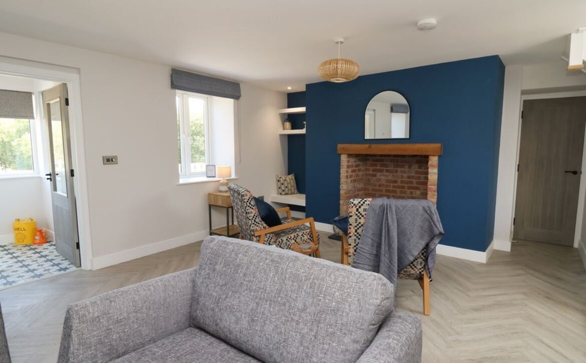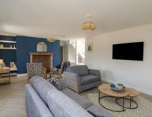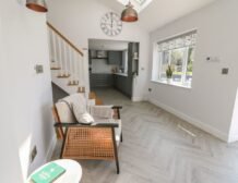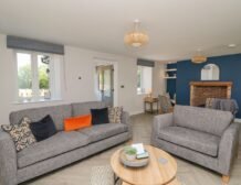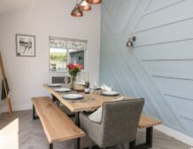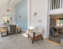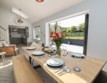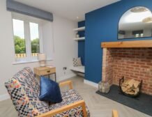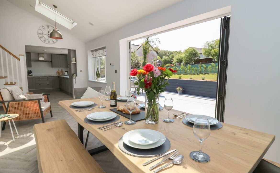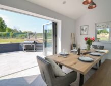 Inside the property, you’ll find everything you need for a self-catering stay, including underfloor heating throughout, a fully-fitted kitchen with double electric oven, a spacious dining area which seats up to eight, and an inviting living area with a woodburning stove, Smart TV and bi-folding doors leading to the outdoor garden patio.