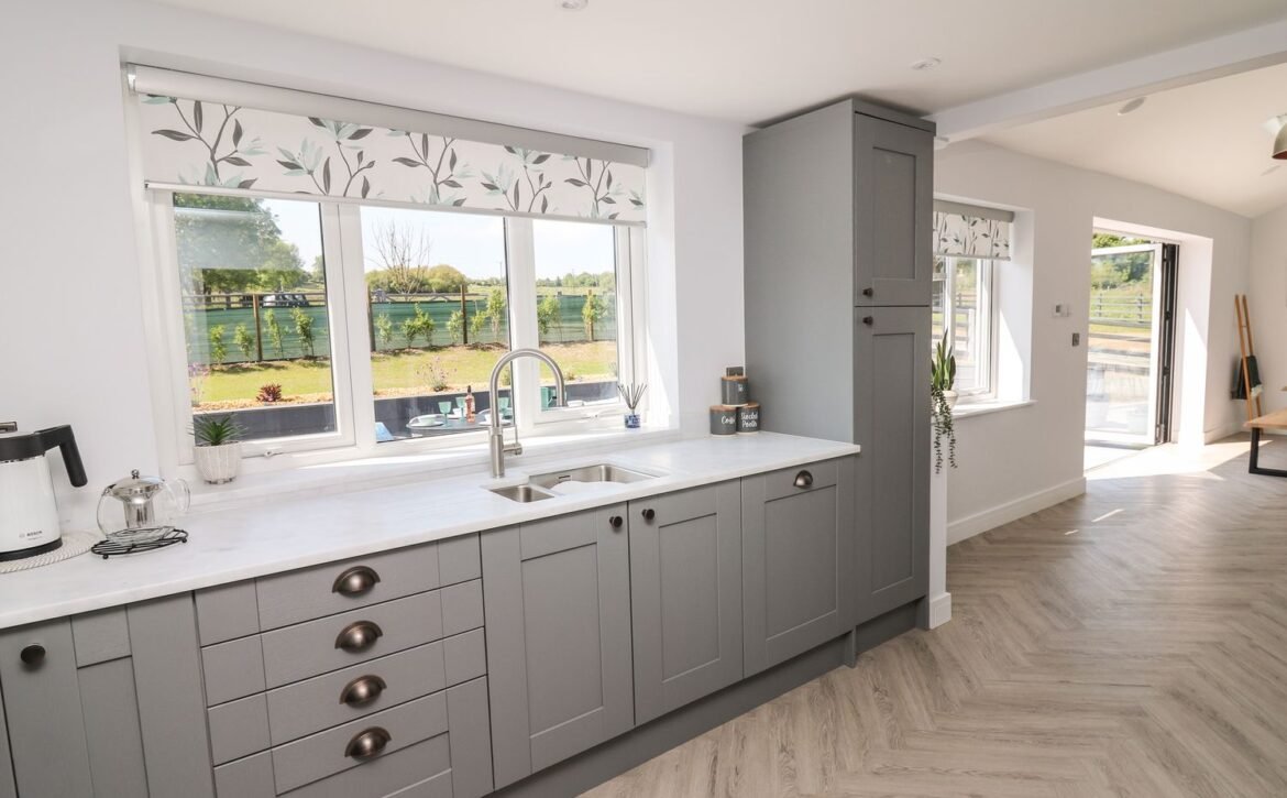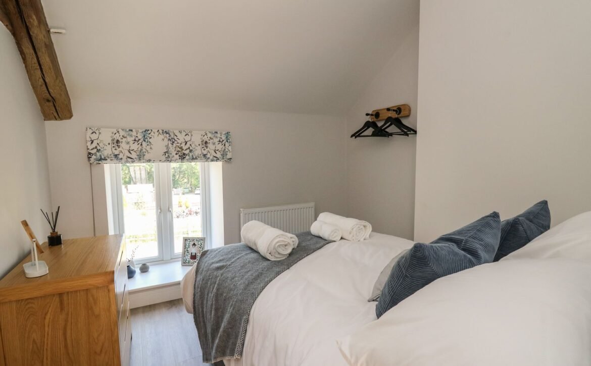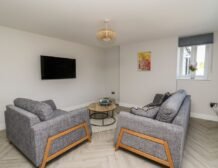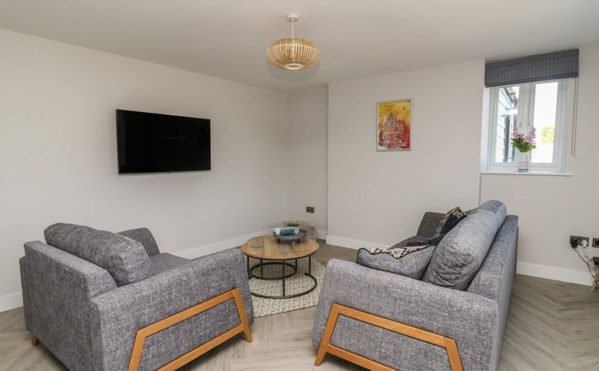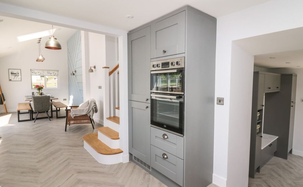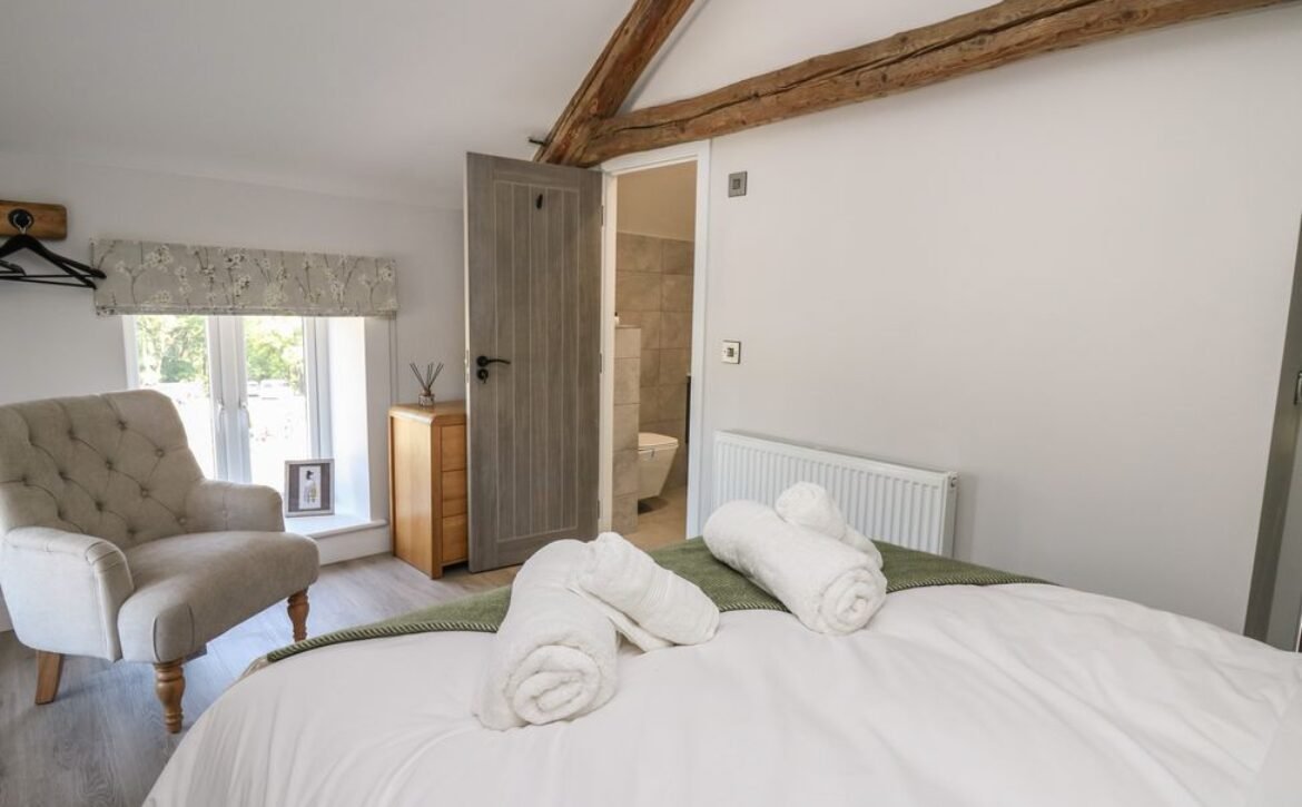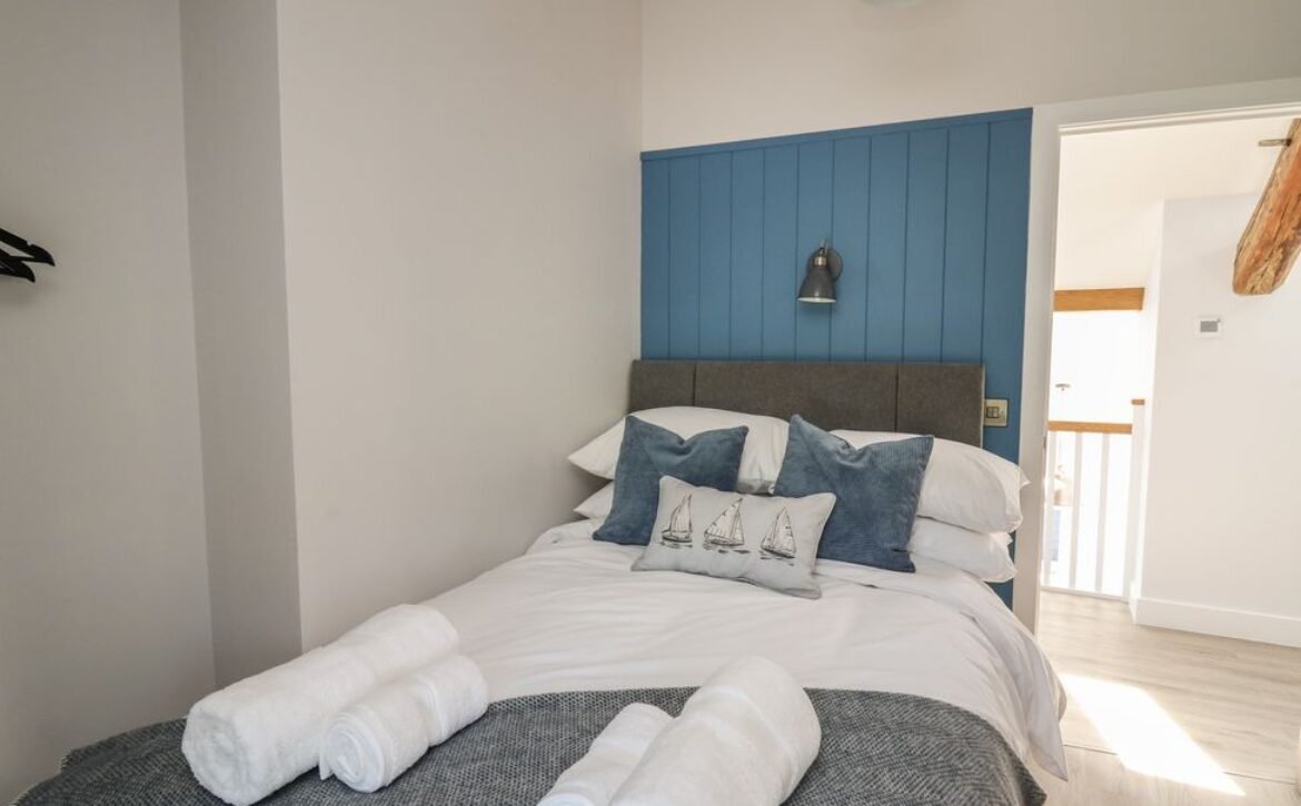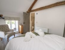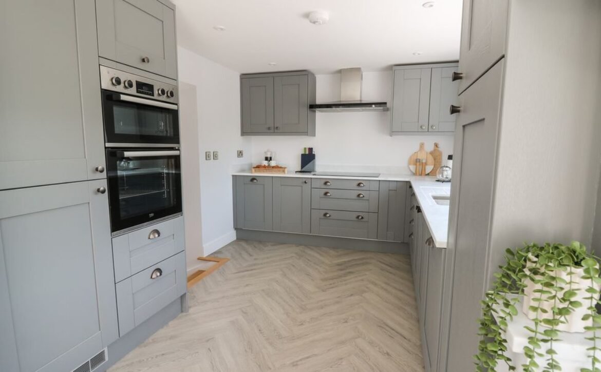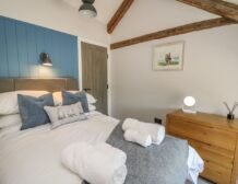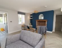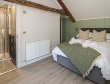 Inside the property, you’ll find everything you need for a self-catering stay, including underfloor heating throughout, a fully-fitted kitchen with double electric oven, a spacious dining area which seats up to eight, and an inviting living area with a woodburning stove, Smart TV and bi-folding doors leading to the outdoor garden patio.