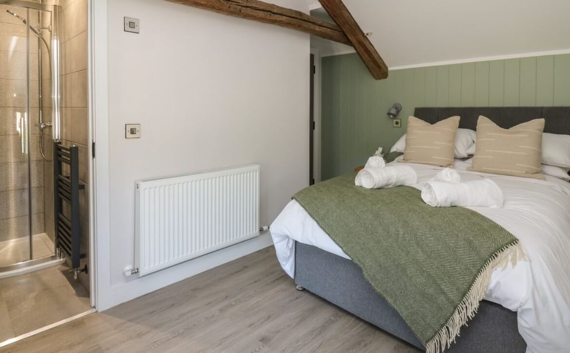 - Three bedrooms: 1 x double with en-suite shower, basin and WC, 1 x double, 1 x small double