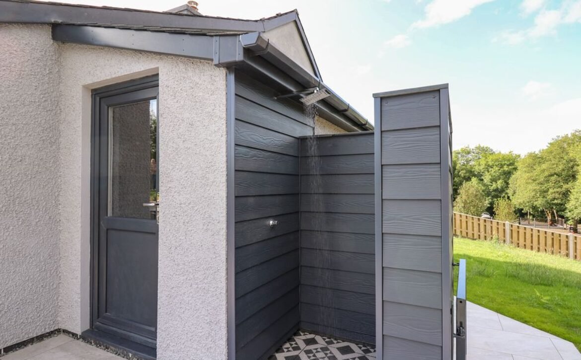 Outside, you can enjoy a large enclosed rear garden with seating area, hot tub, outdoor shower and barbecue, perfect for those warmer months.