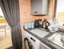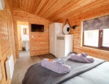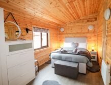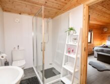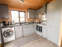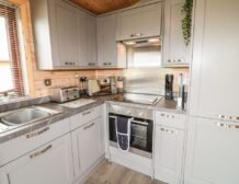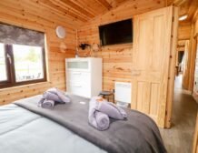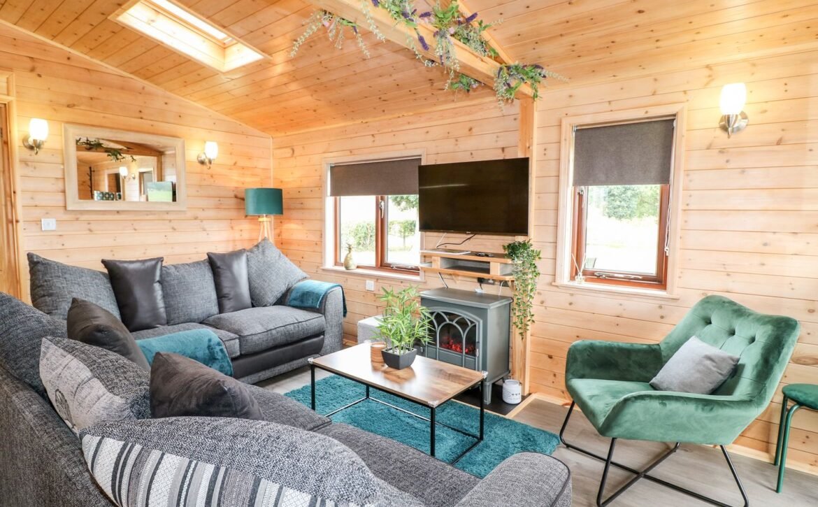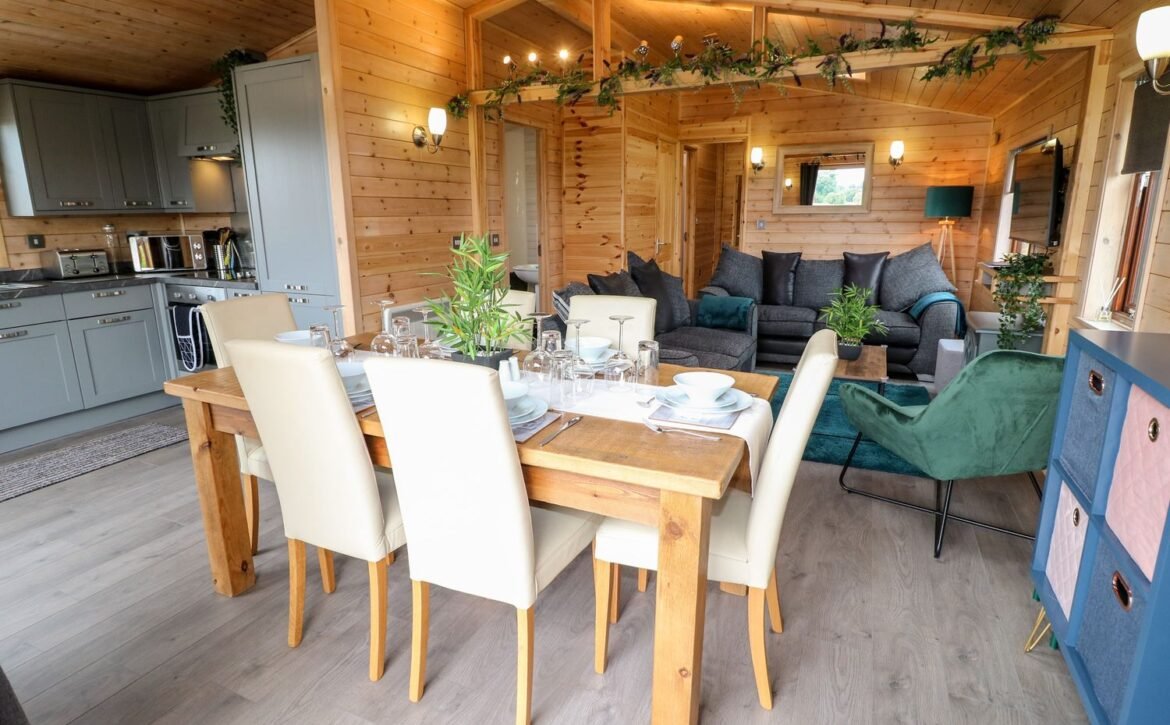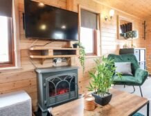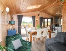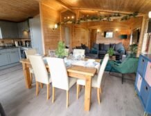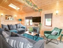 The open-plan living space enjoys a contemporary design that seamlessly complements the wood-cladding of the lodge, this is a wonderfully space to relax come evening.