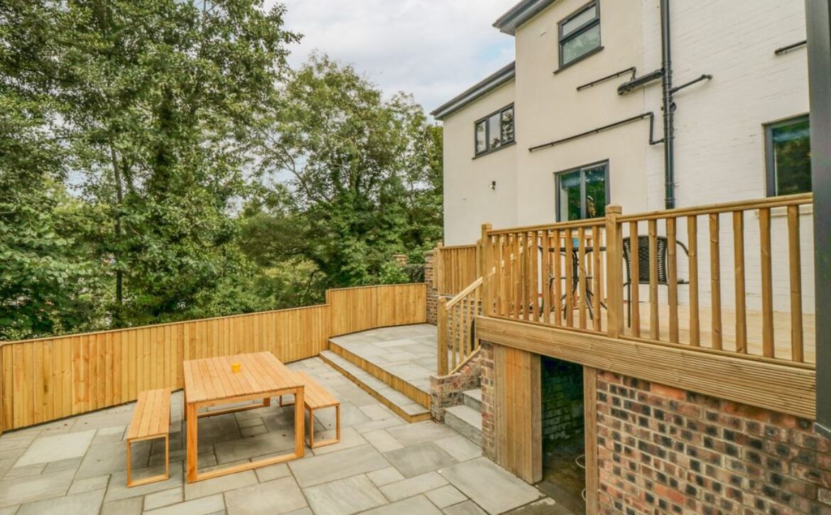 - Rear, multilevel garden with bbq, terrace, decking, lawn and furniture