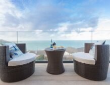 - Seaward facing balcony, ground floor seaward facing landscaped garden and terrace, outside furniture including barbecue, table and chairs