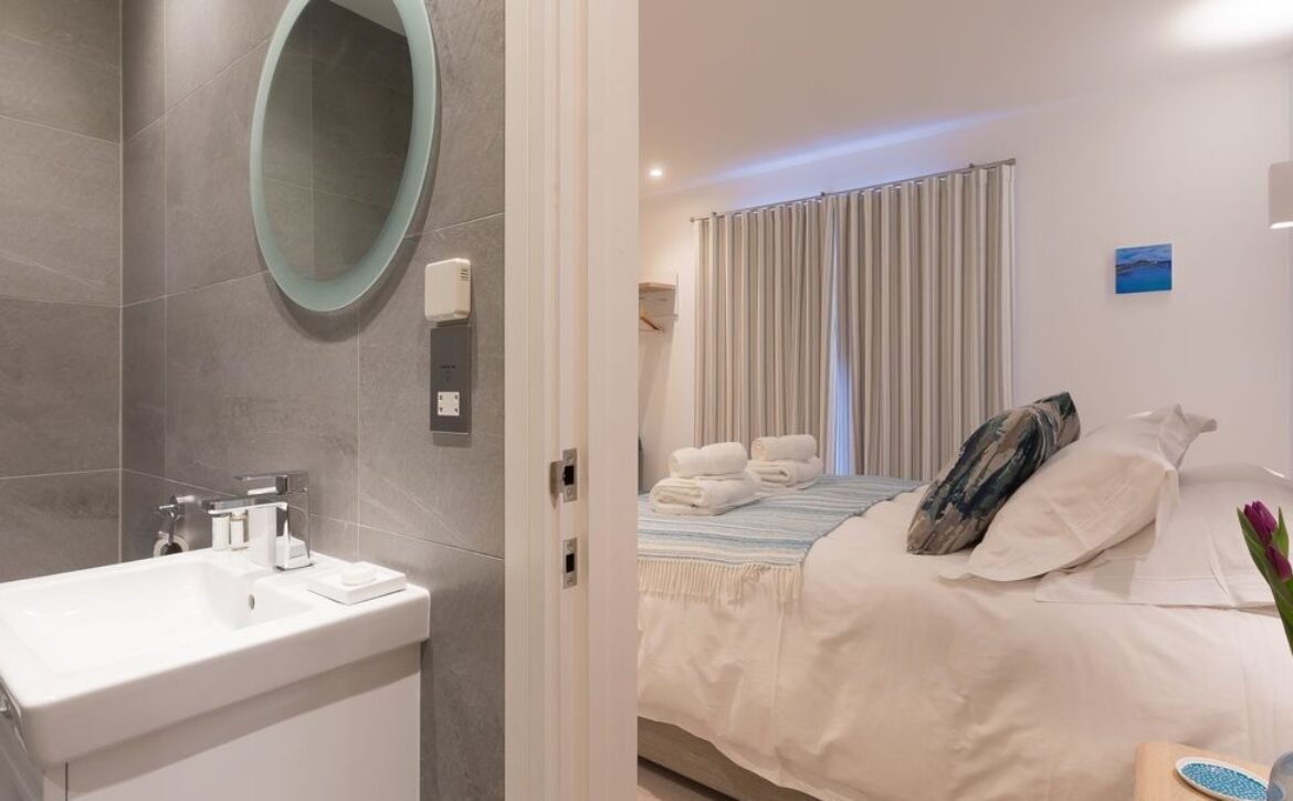 is conveniently located on the first floor off the hallway, two fabulous outside spaces, both with stunning views of the bay offer great places to relax, a frameless first floor balcony, is accessible from the living area through sliding doors, comfortable outdoor furniture is provided, on the ground floor, a large sun terrace leads to a private landscaped garden with a Weber charcoal barbeque, spend time enjoying the sun set over St Ives, Carbis Bay Beach is just a short walk away, this glorious secluded bay is a lifeguarded beach at peak times, ideal for enjoying water sports or swimming in the surf, from the beach you can access a network of coastal paths which circle Cornwall’s cliffs, head towards Hayle in one direction or the beautiful traditional fishing village of St Ives in the other, St Ives is world renowned for it’s art and is home to The Tate and Barbara Hepworth Museum and Sculpture Garden, one of its former famous residents, its cobbled streets are lined with restaurants, cafes and independent shops to browse and its surrounded by glorious sandy beaches, for a relaxing but exciting return to Carbis Bay, ride the scenic railway hugging the Cornish coast, this connects St Ives and its surrounding area and is a magical trip, If you have kids they will love feeding the animals at Paradise Park in Hayle and the older ones will enjoy the exciting Flambards Theme Park in Helston.