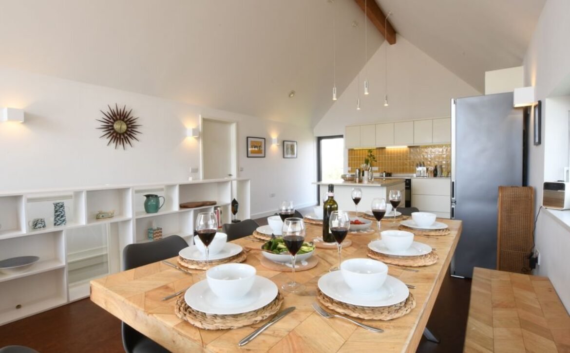 Step into the fully equipped kitchen and you will find everything needed to rustle up some fantastic food for the whole family and once the food is ready, serve up at the stylish dining table all set up ready for guests to enjoy long, lingering meals together and catch up on the day’s news.