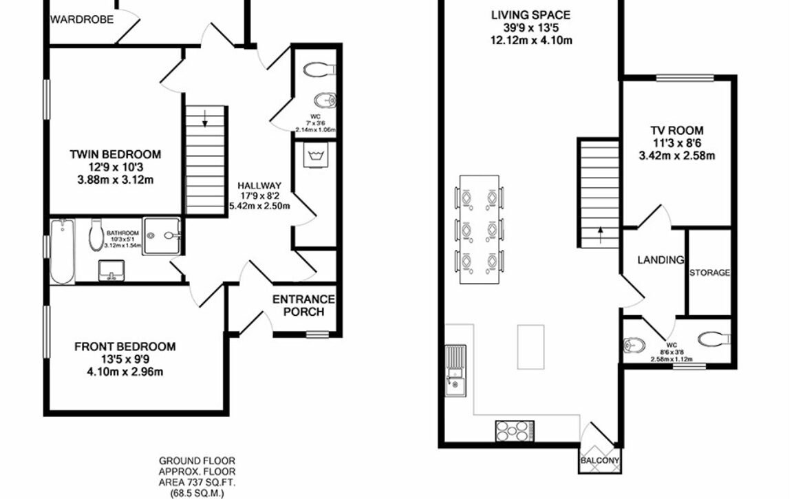 As you climb the stairs to the first-floor living space, the light and airy holiday home opens its arms and your holiday can begin.