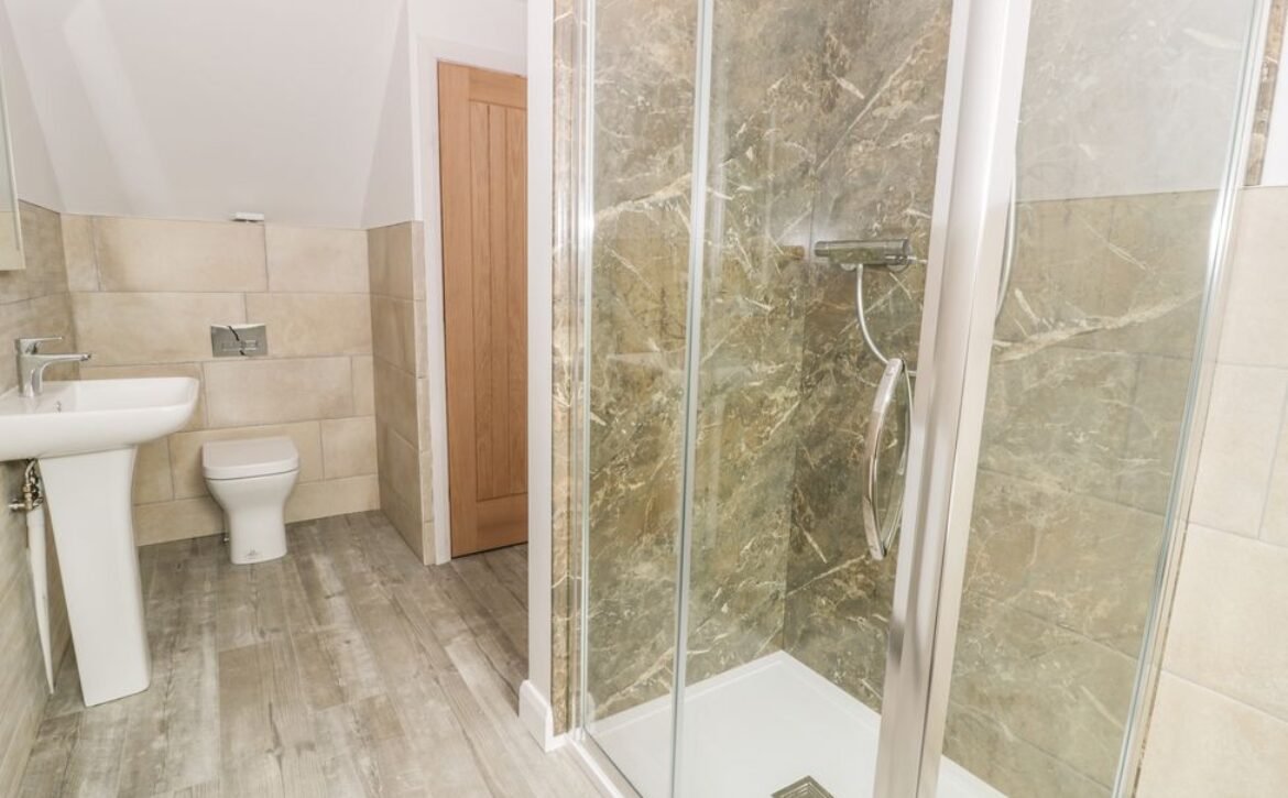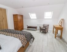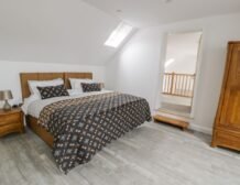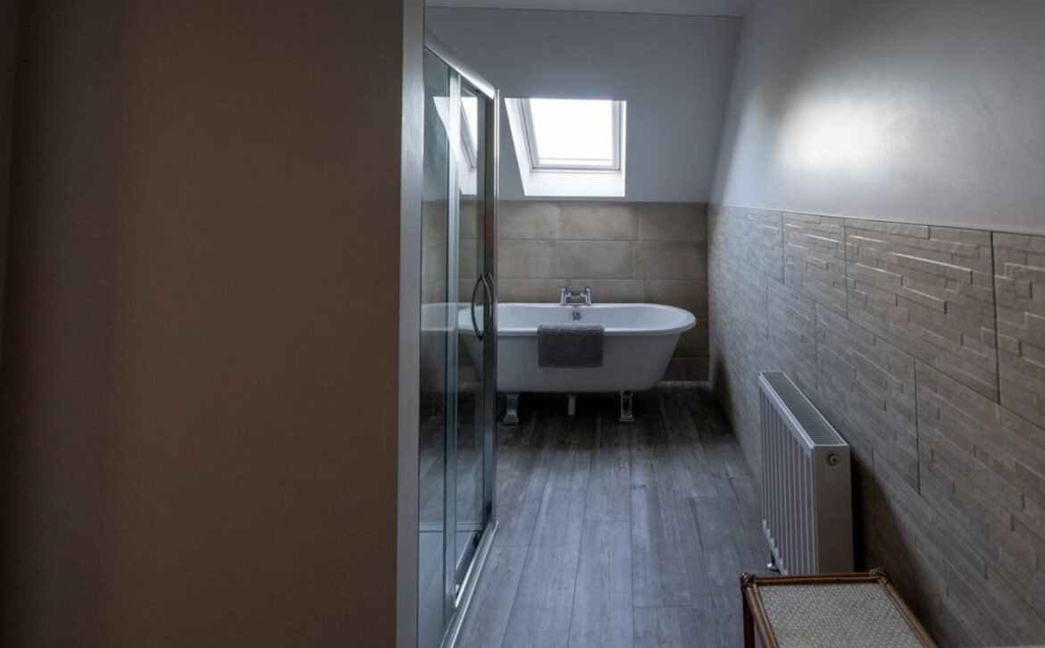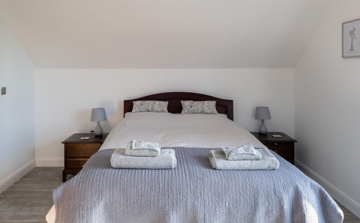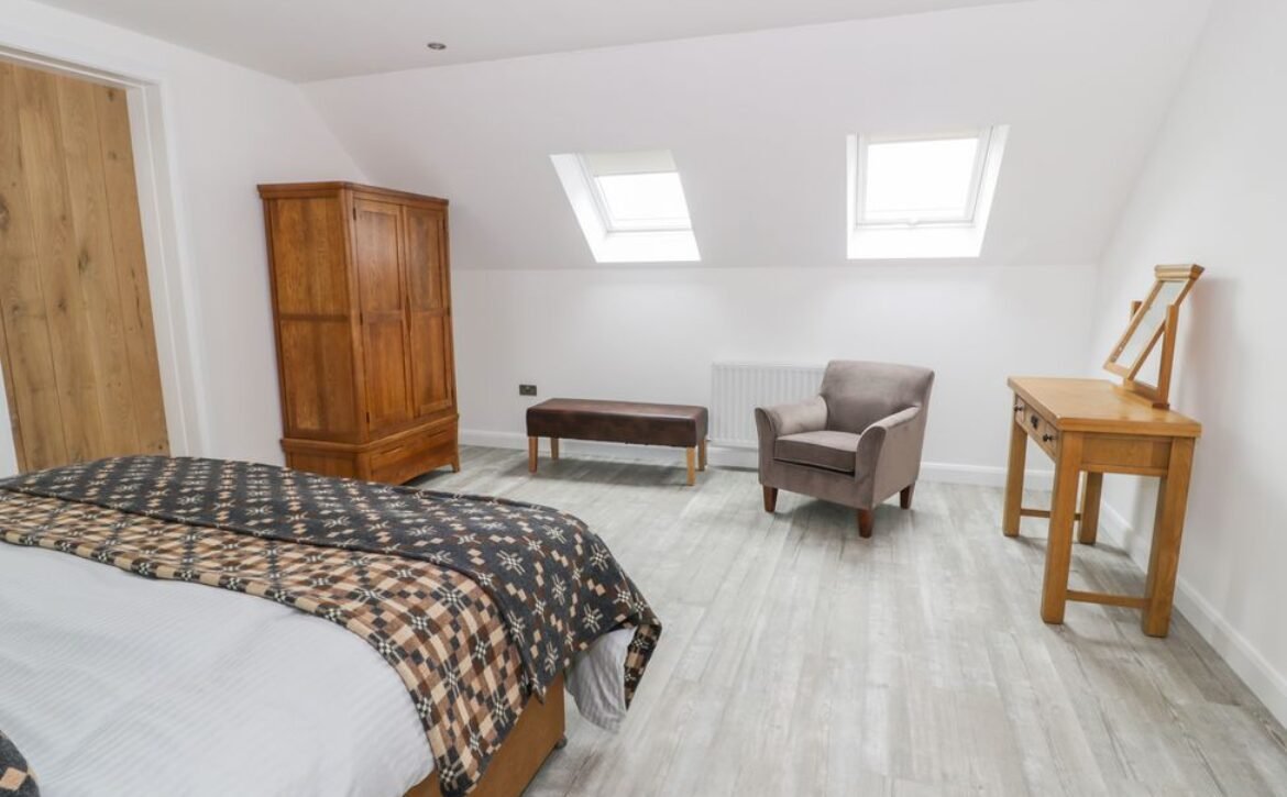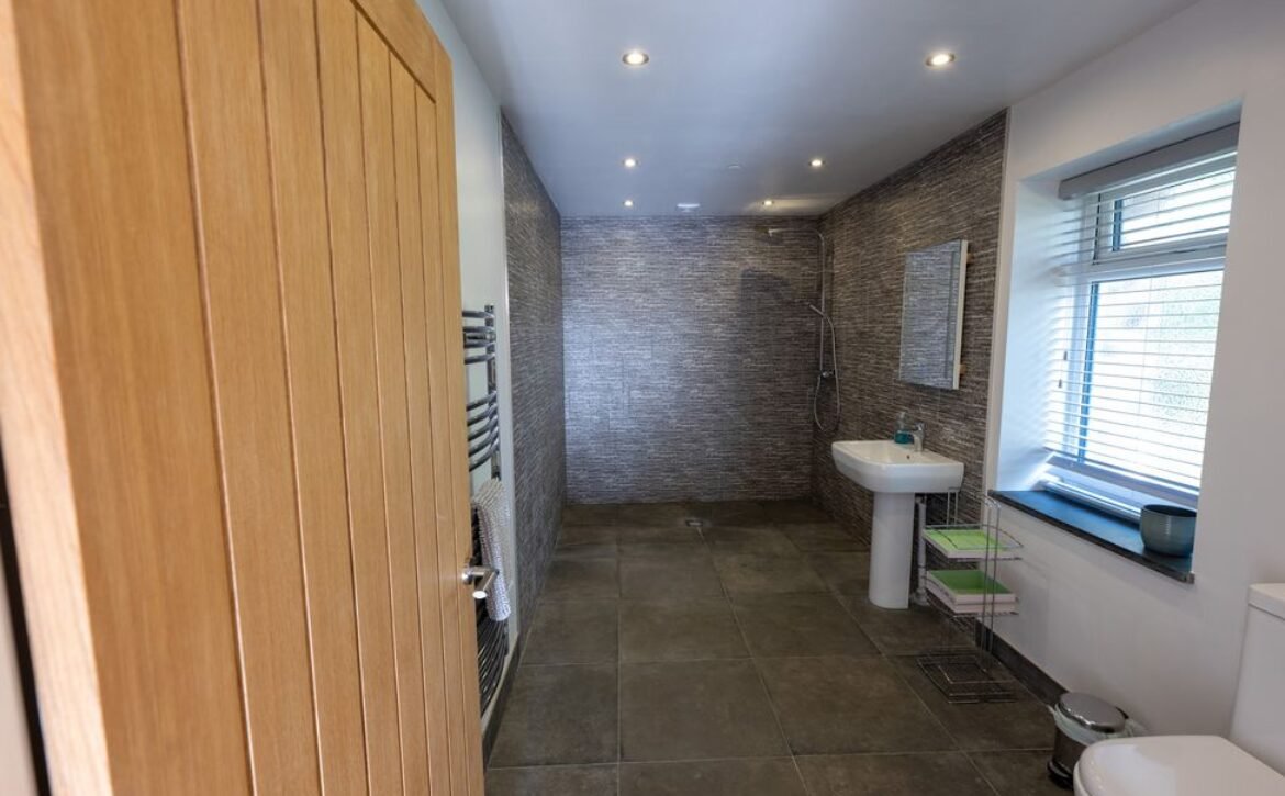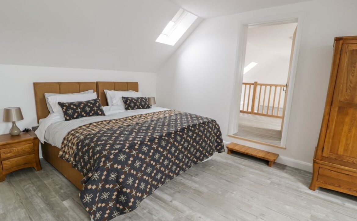 - Three bedrooms: 1 x ground-floor king-size with en-suite walk in wetroom with shower, basin and WC, 1 x first-floor super king-size (zip/link, can be two singles upon request) with mezzanine snug and en-suite roll-top, freestanding bath, walk-in shower, basin and WC, 1 x first-floor king-size with Juliet balcony and en-suite bath, basin and WC