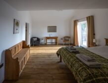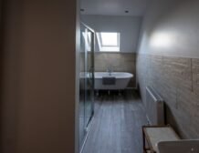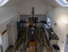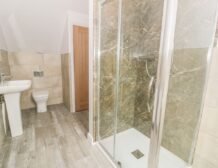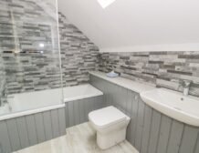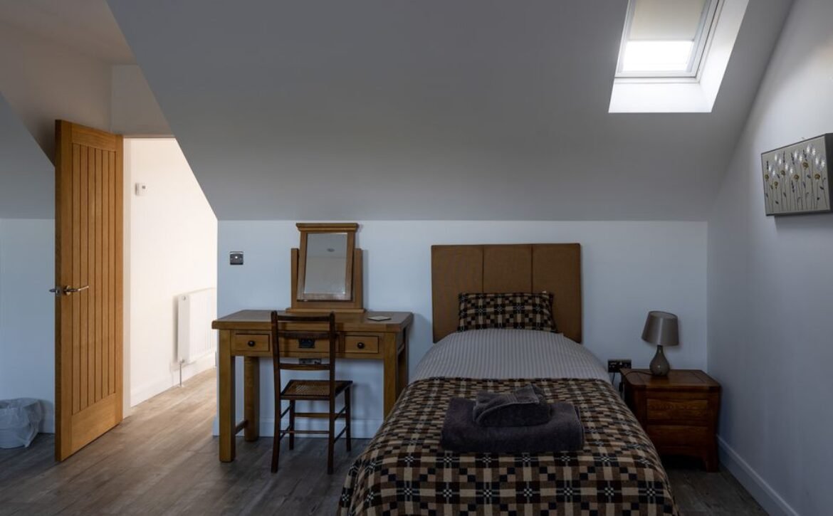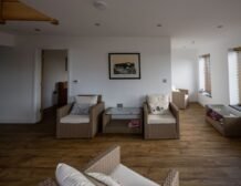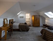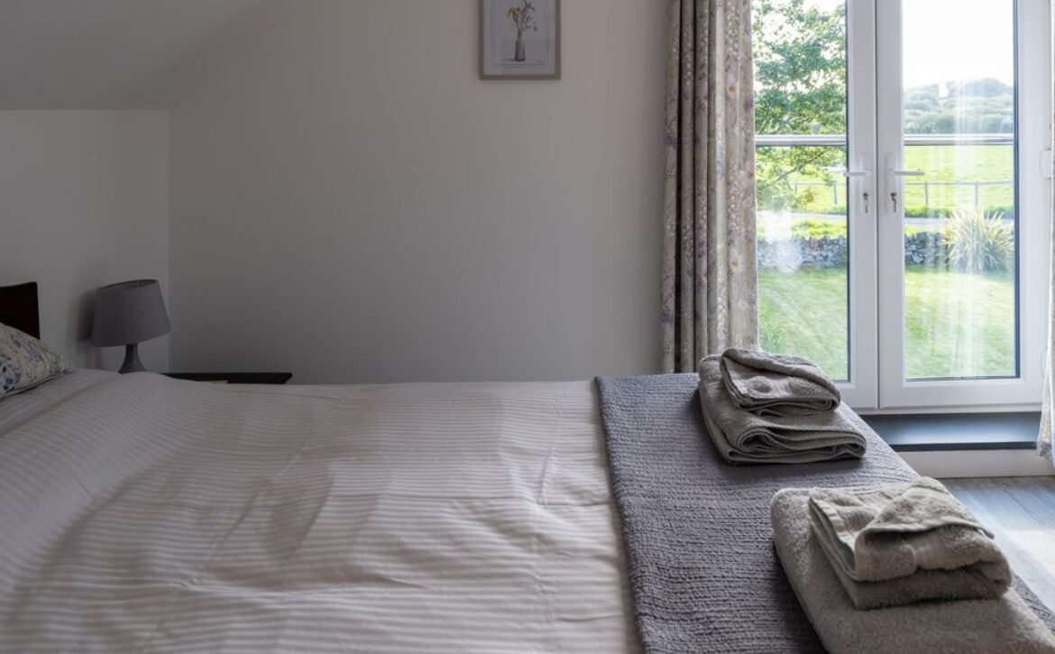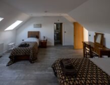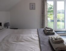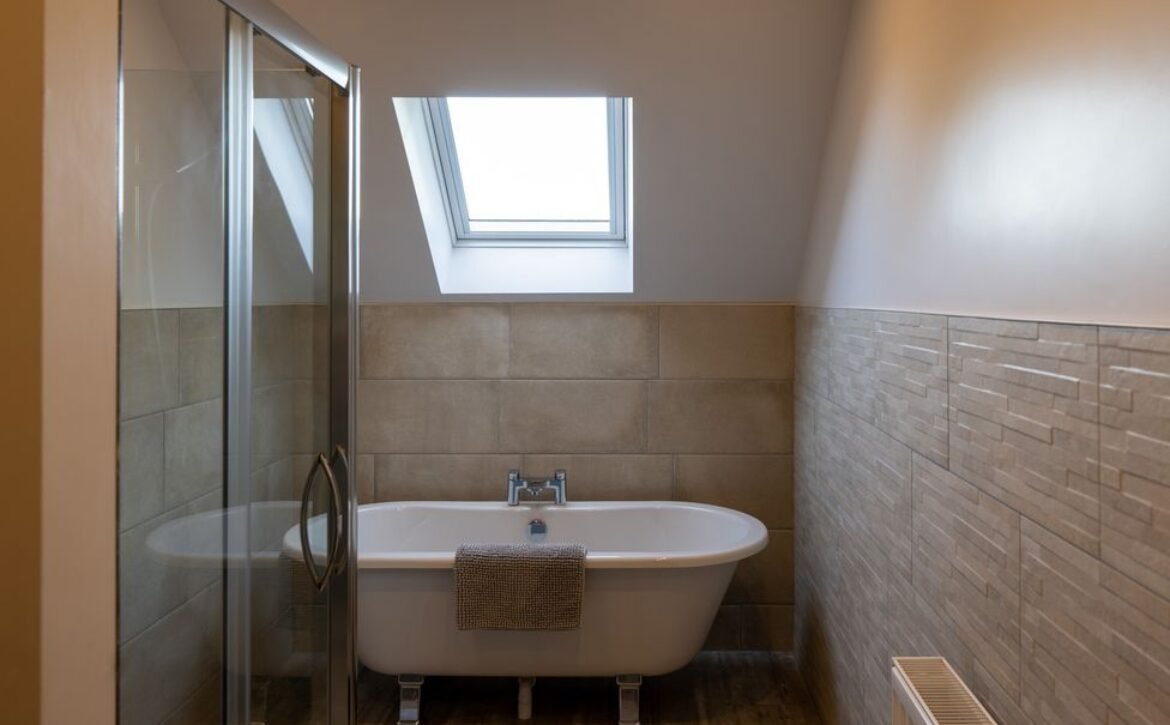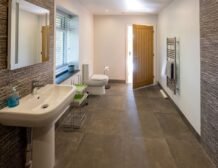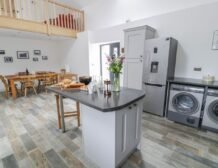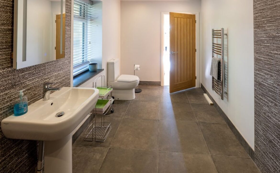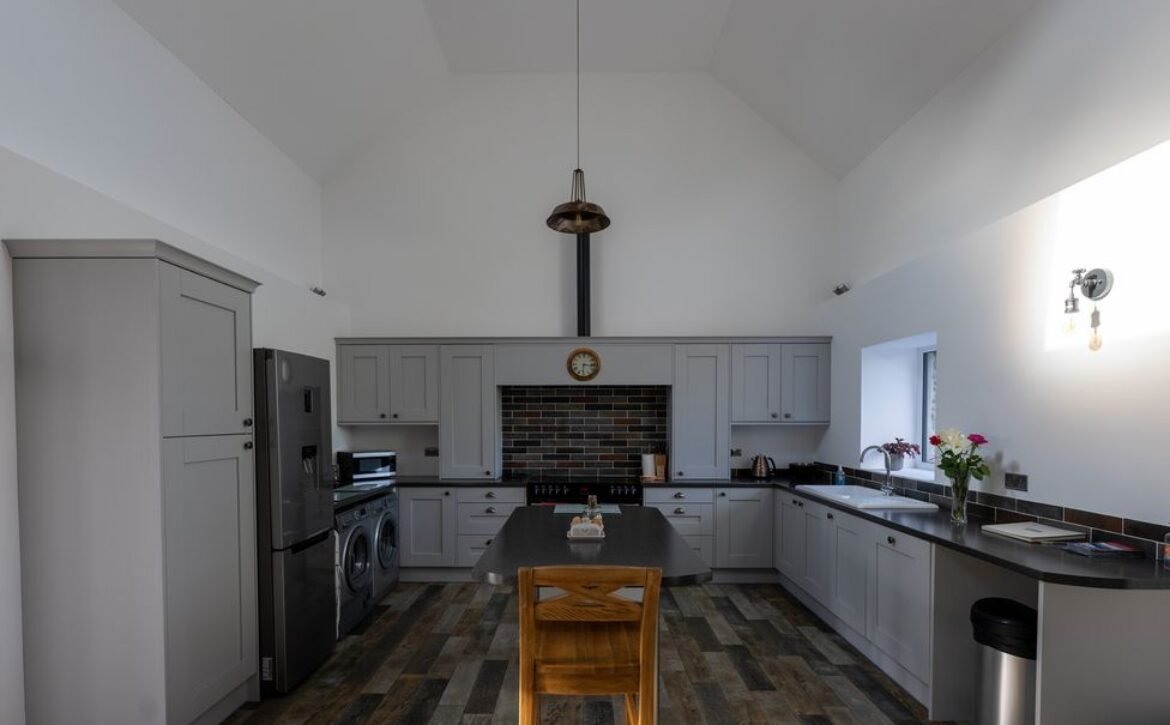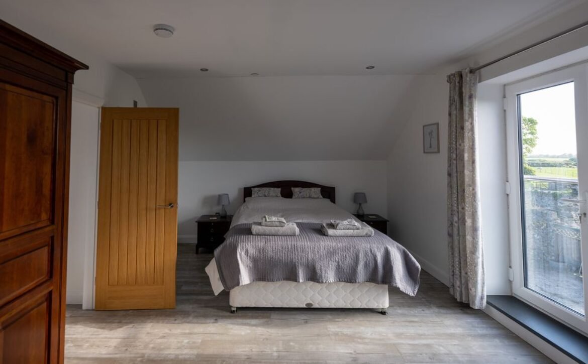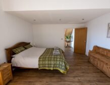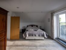 - Three bedrooms: 1 x ground-floor king-size with en-suite walk in wetroom with shower, basin and WC, 1 x first-floor super king-size (zip/link, can be two singles upon request) with mezzanine snug and en-suite roll-top, freestanding bath, walk-in shower, basin and WC, 1 x first-floor king-size with Juliet balcony and en-suite bath, basin and WC