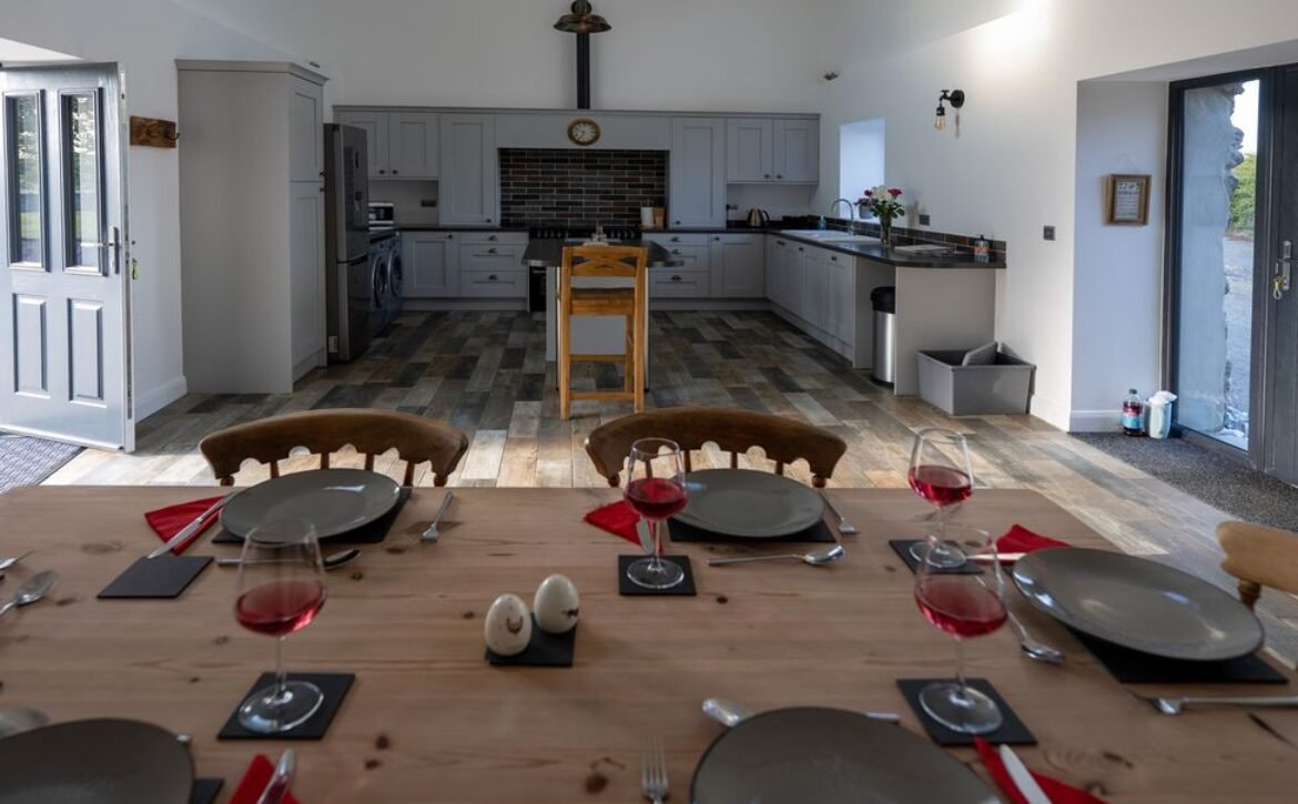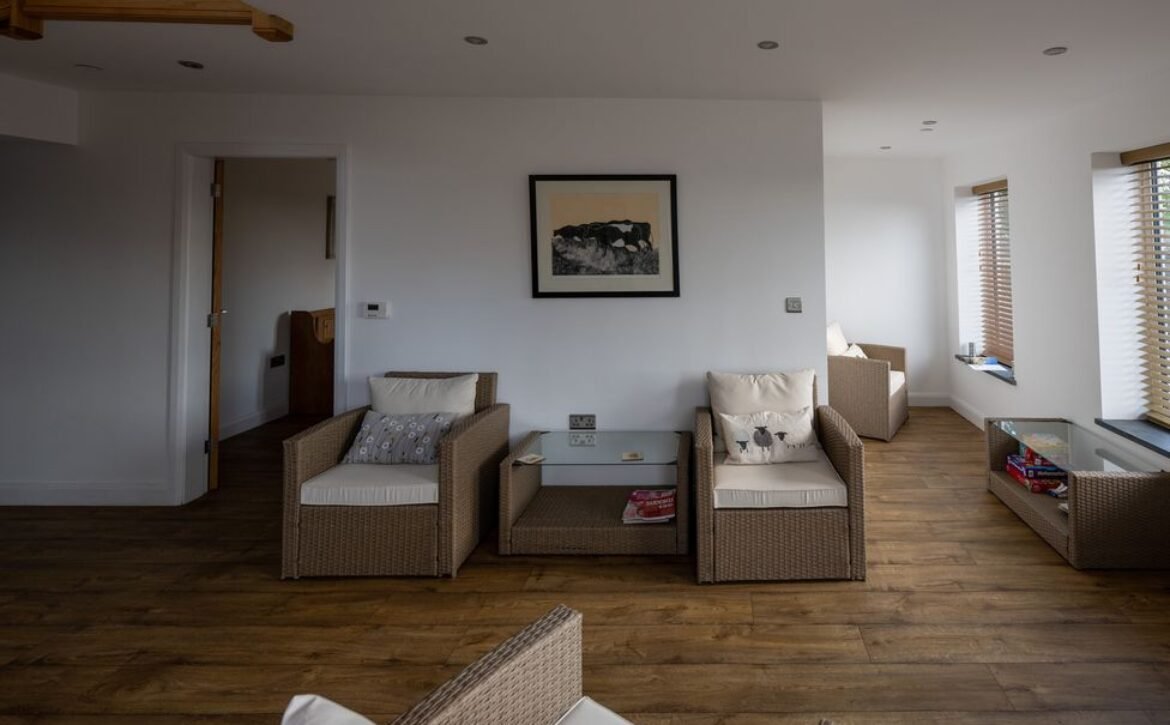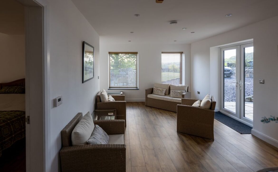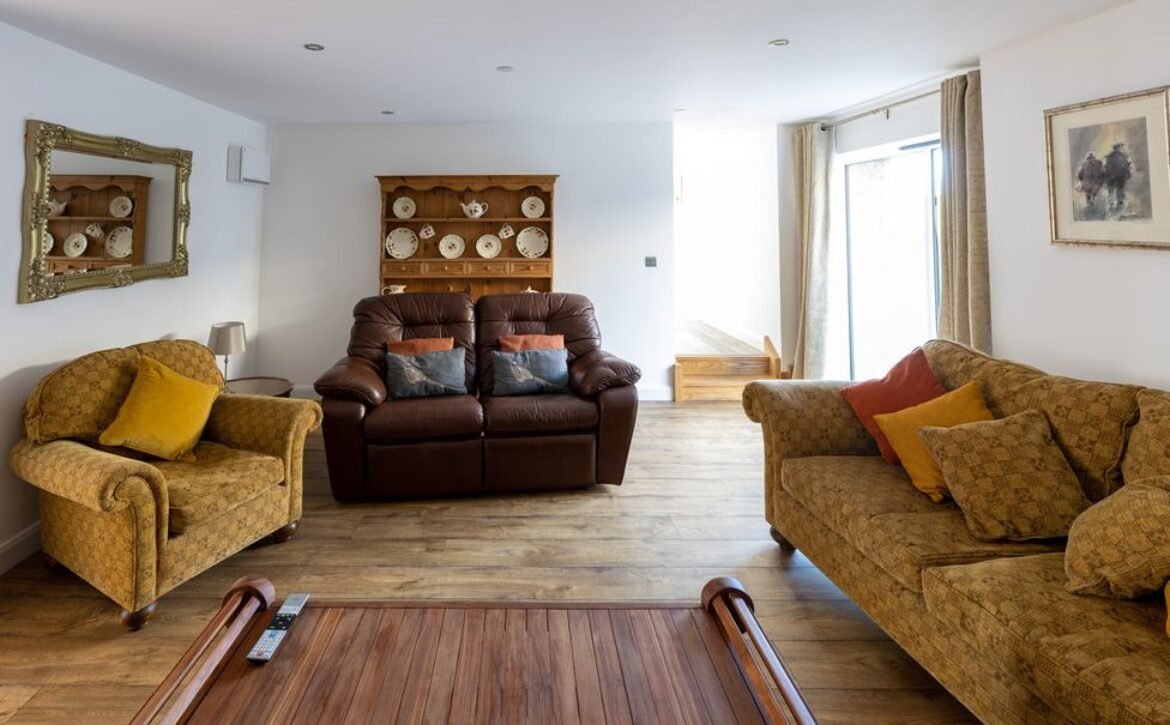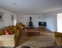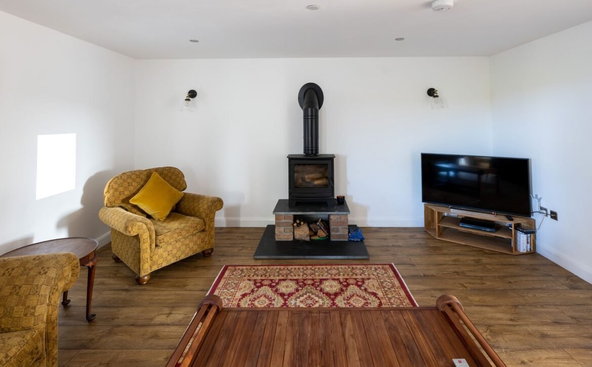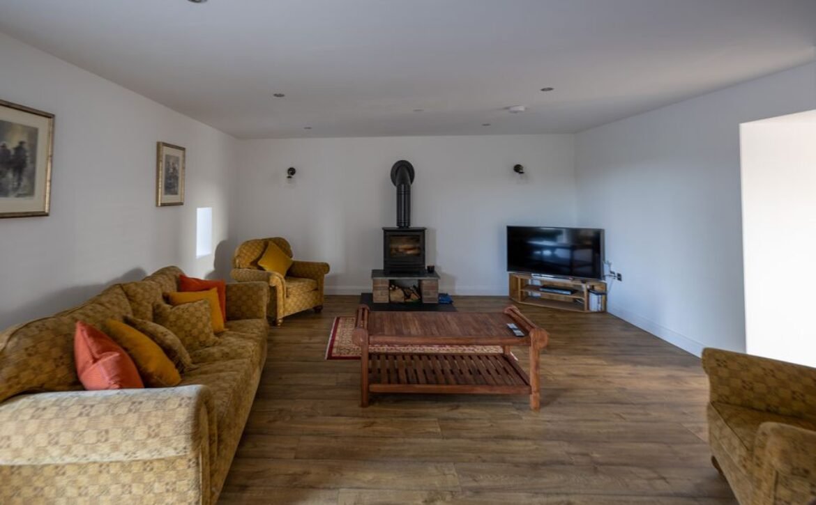 Walk through to the large sitting room where you can curl up with your loved ones on the provided sofa and spend the evening catching up with your favourite shows, whilst the warming woodburning stove keeps you nice and toasty.