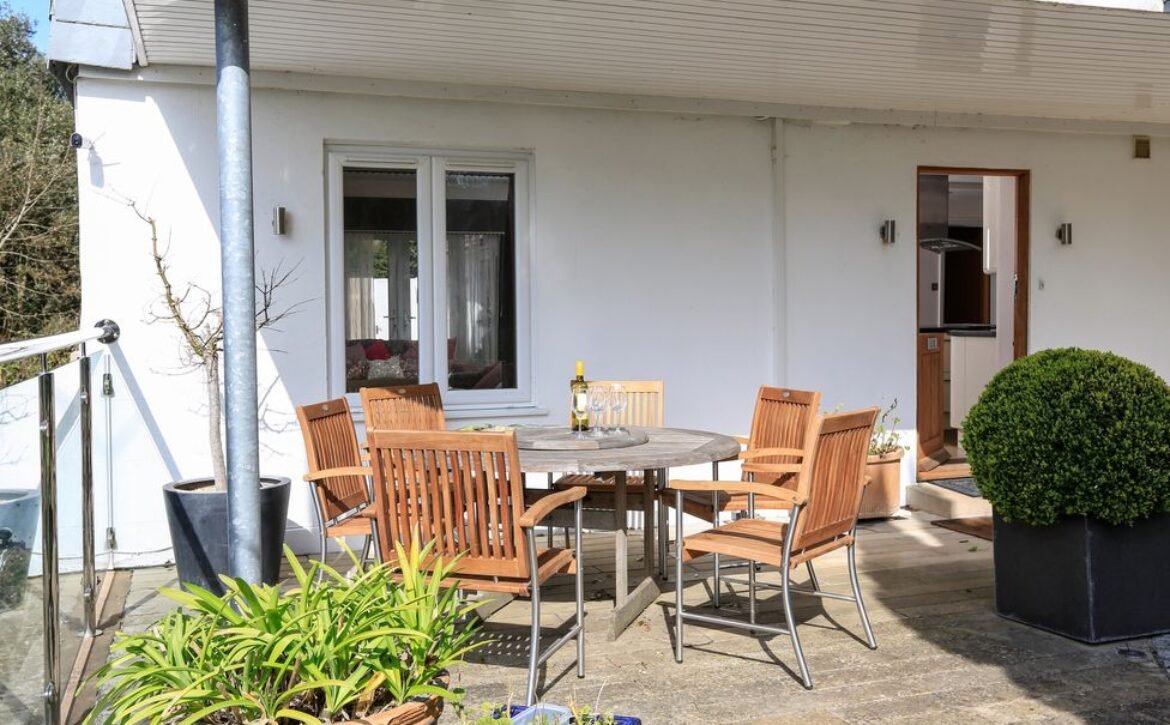 Outside there is a landscaped garden with decked seating area, a front patio with garden furniture and an iron dining table to take advantage of the beautiful summer evenings.