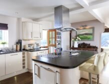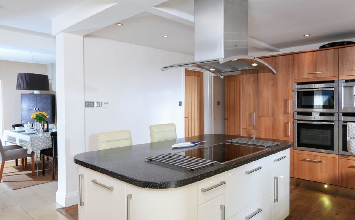 - Three en-suite bedrooms: 2x Super-King, 1x Bunk beds (with stacker bed under), Modern kitchen