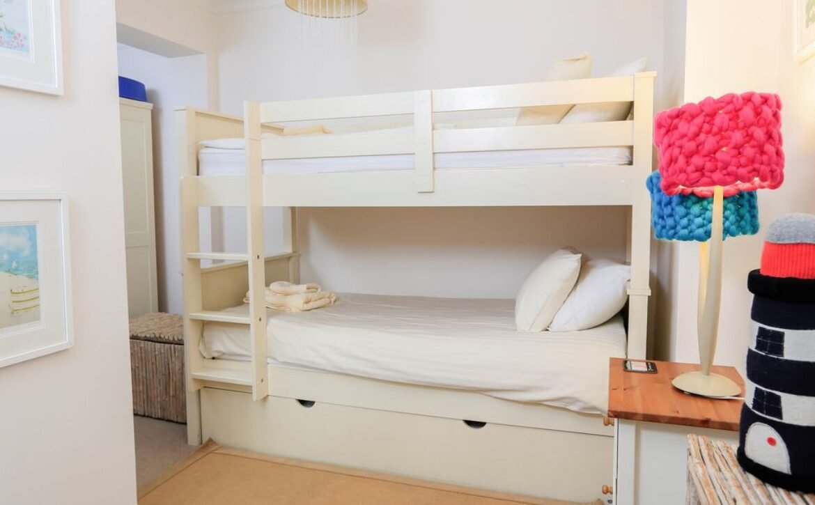 There are three en-suite bedrooms in total; a master with a Super- King bed, a second Super-King and a bunk room (with a stacker bed under).