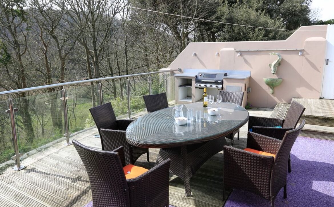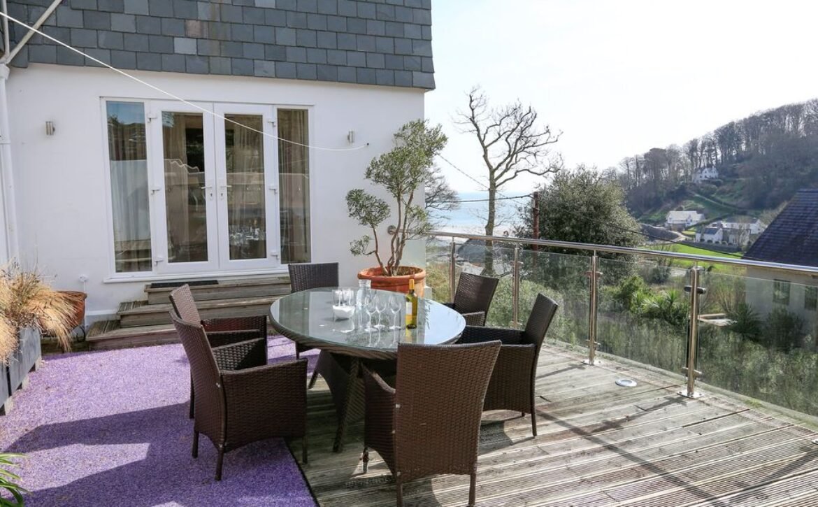 A triple aspect sitting room has lovely views towards the beach, sofas, TV with a Sky package (including Sports and Films) and French doors which lead out onto the decking.