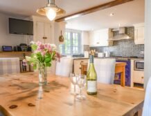 The spacious and well equipped kitchen with dining area provides guests with a wonderful sociable space with ceiling beams giving the room character in abundance.