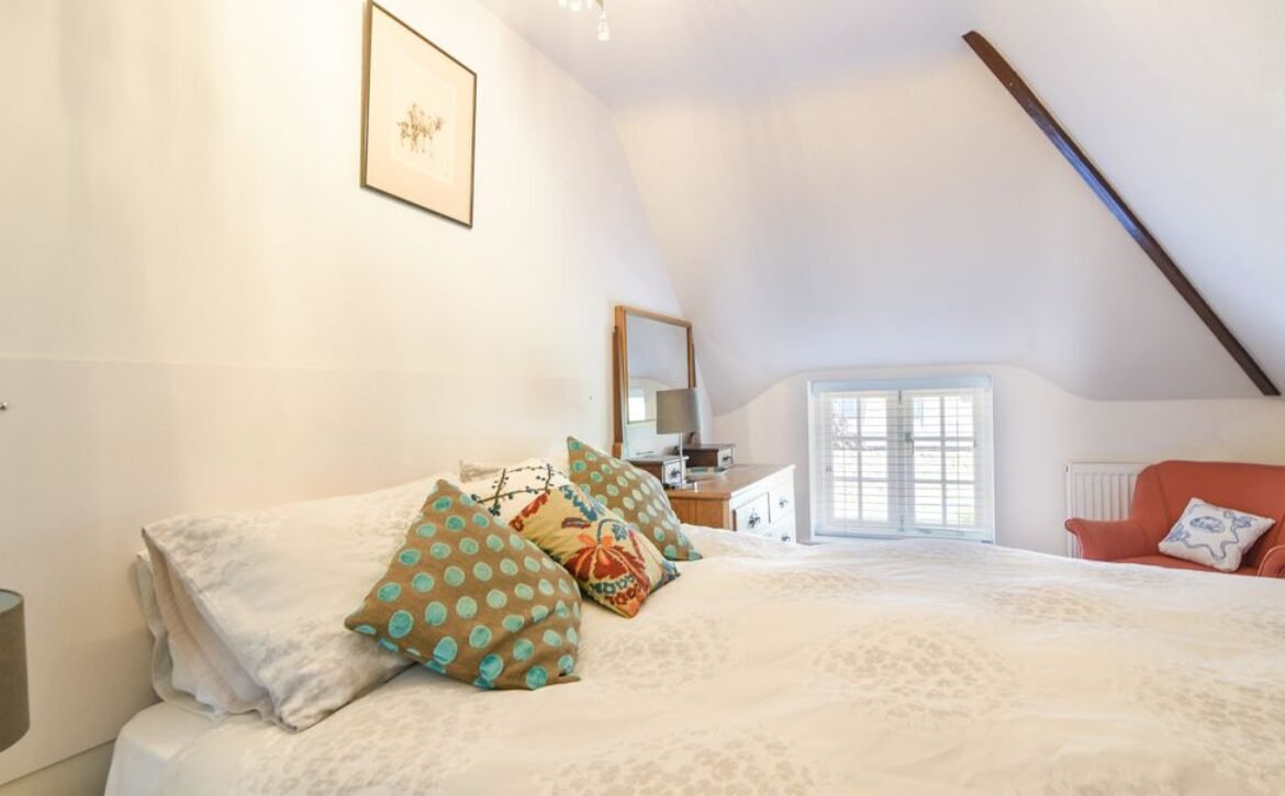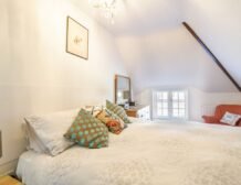 When it comes to nighttime, there is a spacious king-size bedroom with en-suite shower room and two further double bedrooms, all with ceiling beams and sloping ceilings and furnished to provide guests with a comfortable night’s sleep.