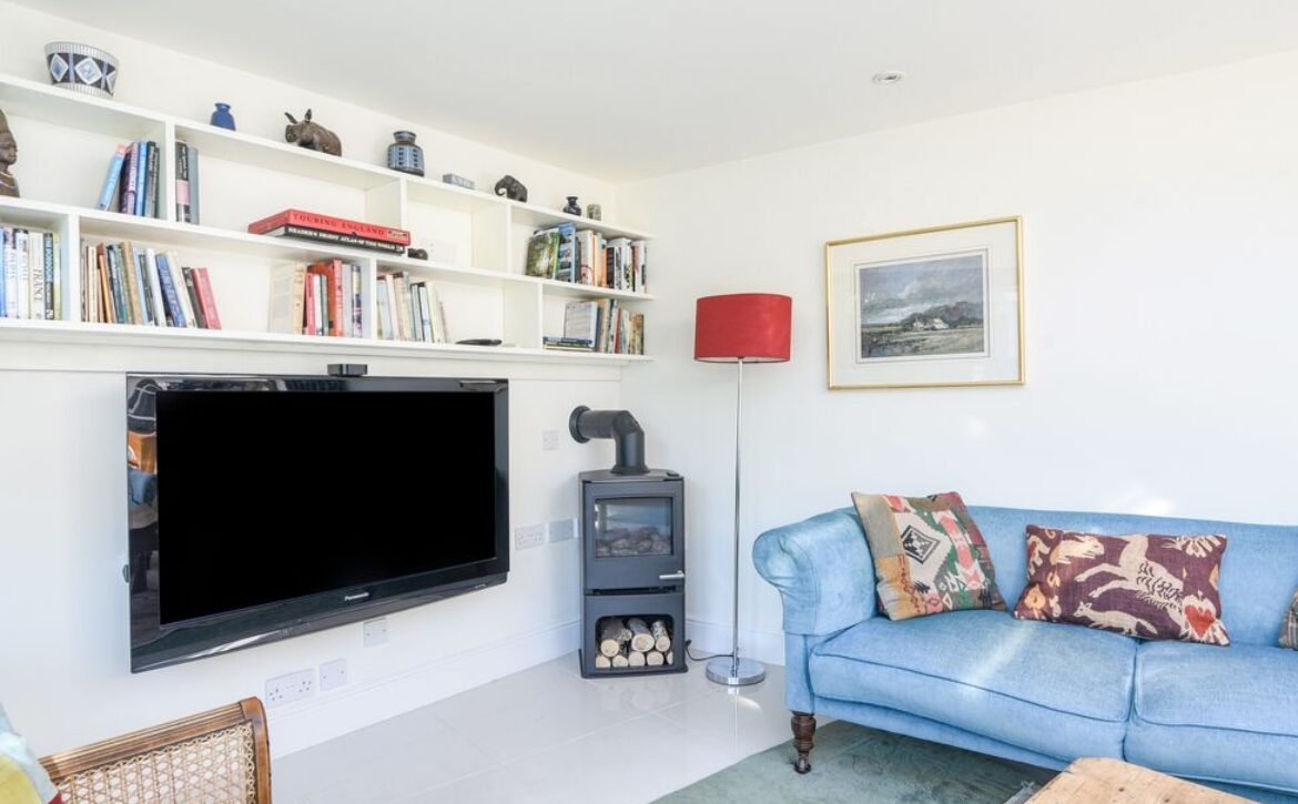The large wall mounted TV and electric wood burning effect stove, make this a room you’ll want to spend time in.