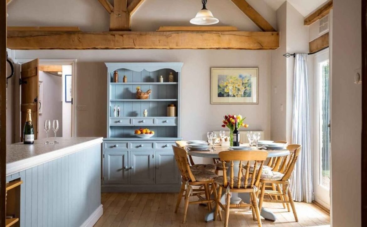 The front door opens up into the open plan kitchen/diner which is a lovely country style room, boasting exposed beams, high vaulted ceilings and is ideal for socialising with your loved ones.