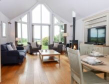 It is light and airy inside with contemporary décor and a woodburning stove, whilst outside there is a hot tub and furniture to make the most of the outdoors.