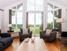 Cross the threshold and discover the open-plan living space, furnished with a plush sofa, two armchairs and a Smart TV with a sound bar for a cinematic night in.