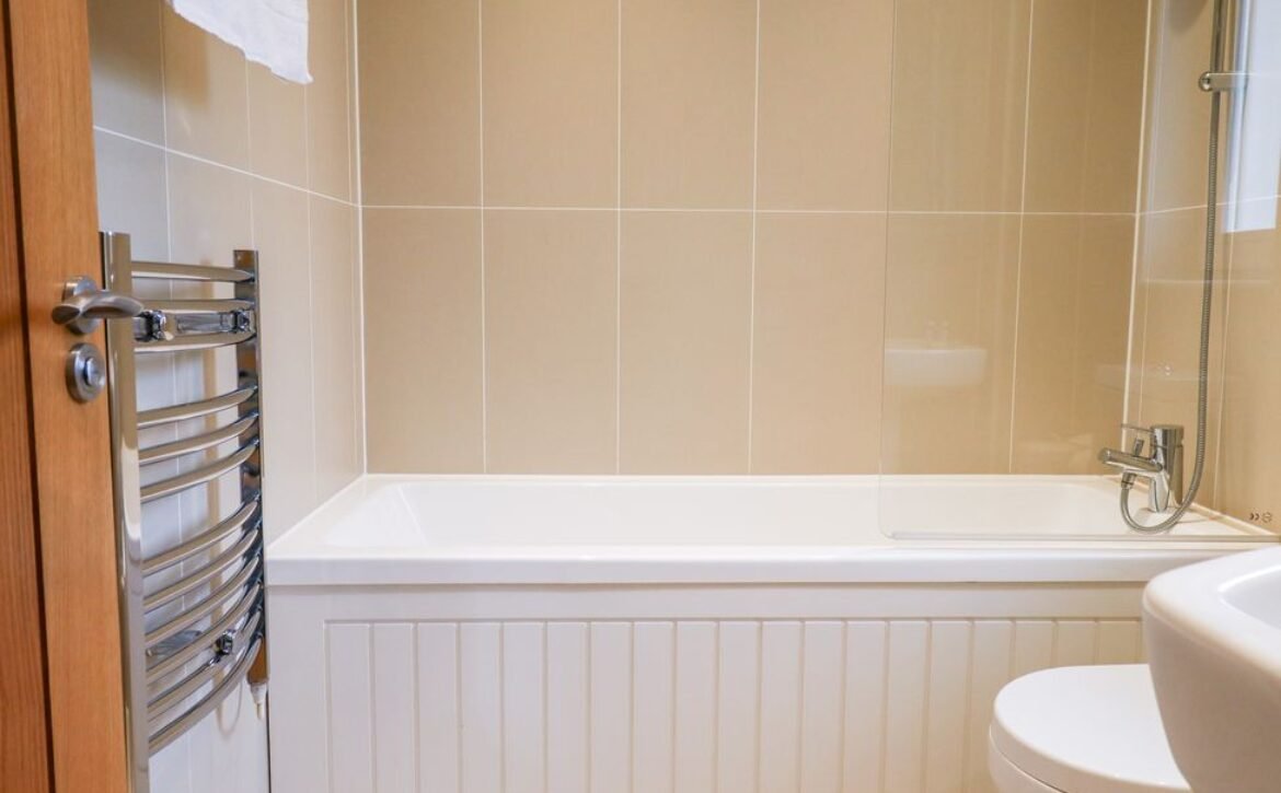 - Two bedrooms: 1 x king-size with smart TV and en-suite walk-in shower, basin, heated towel rail and WC, 1 x twin with en-suite bath, shower over, basin, heated towel rail and WC