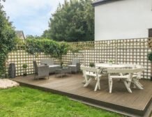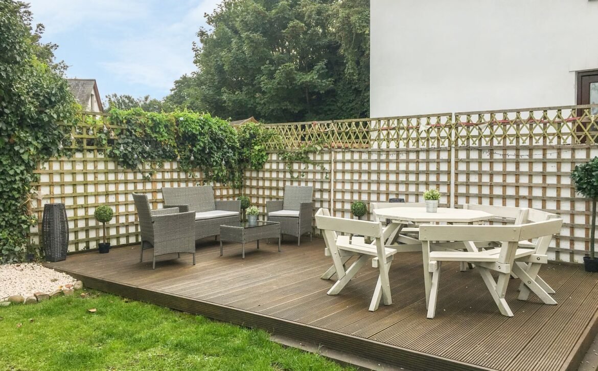 - Enclosed garden with lawn and decked area with furniture