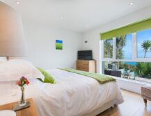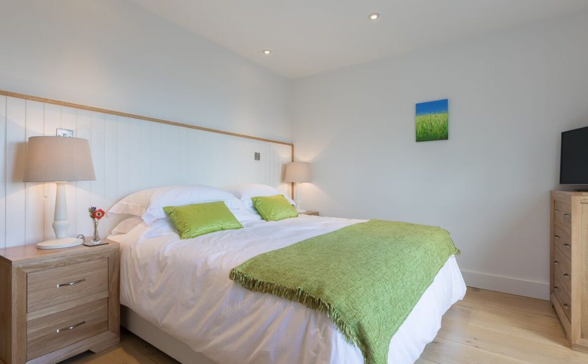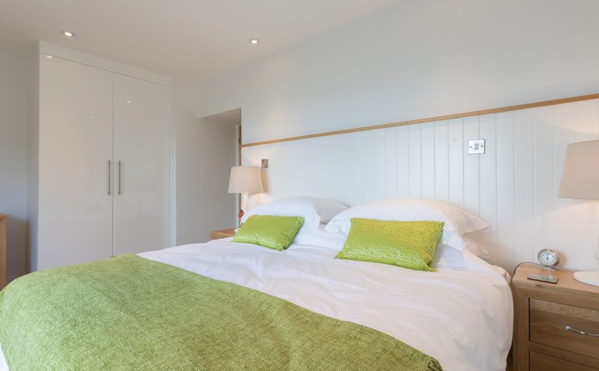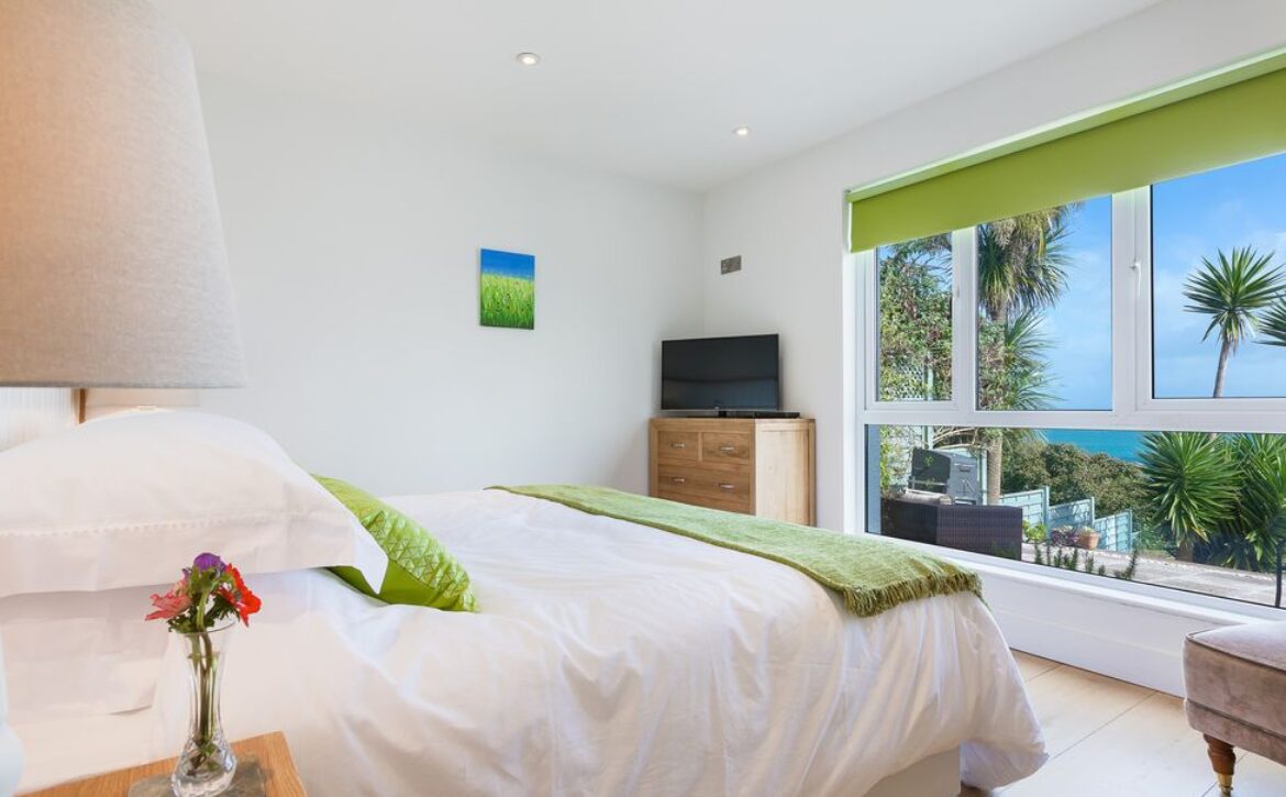 Lie back on the sumptuously dressed super king-size zip and link bed in the master bedroom and enjoy the sea views, through a wall of windows.
