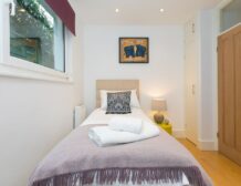 - Ground floor apartment, over one floor, Three bedroom: 1 x super-king (zip/ link, can be twin on request), 1 x double with en-suite shower, basin and WC, 1 x single