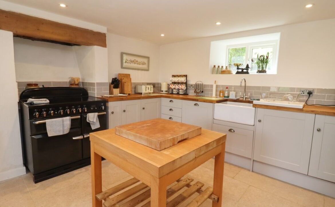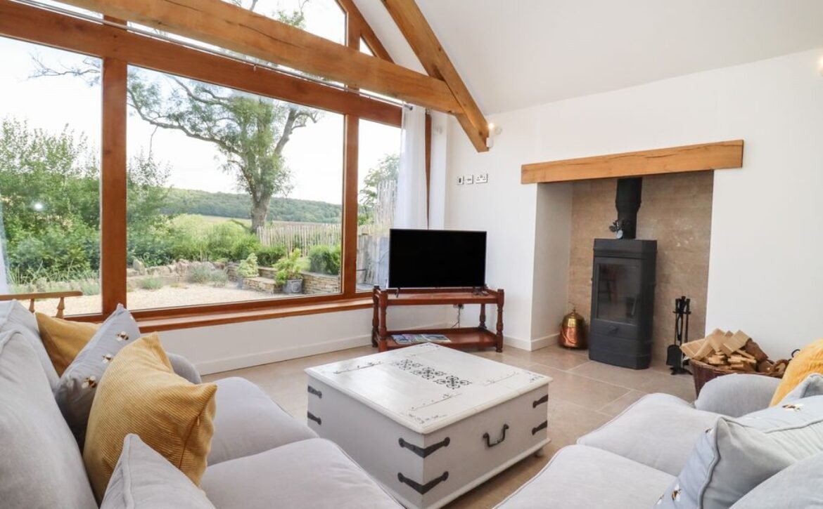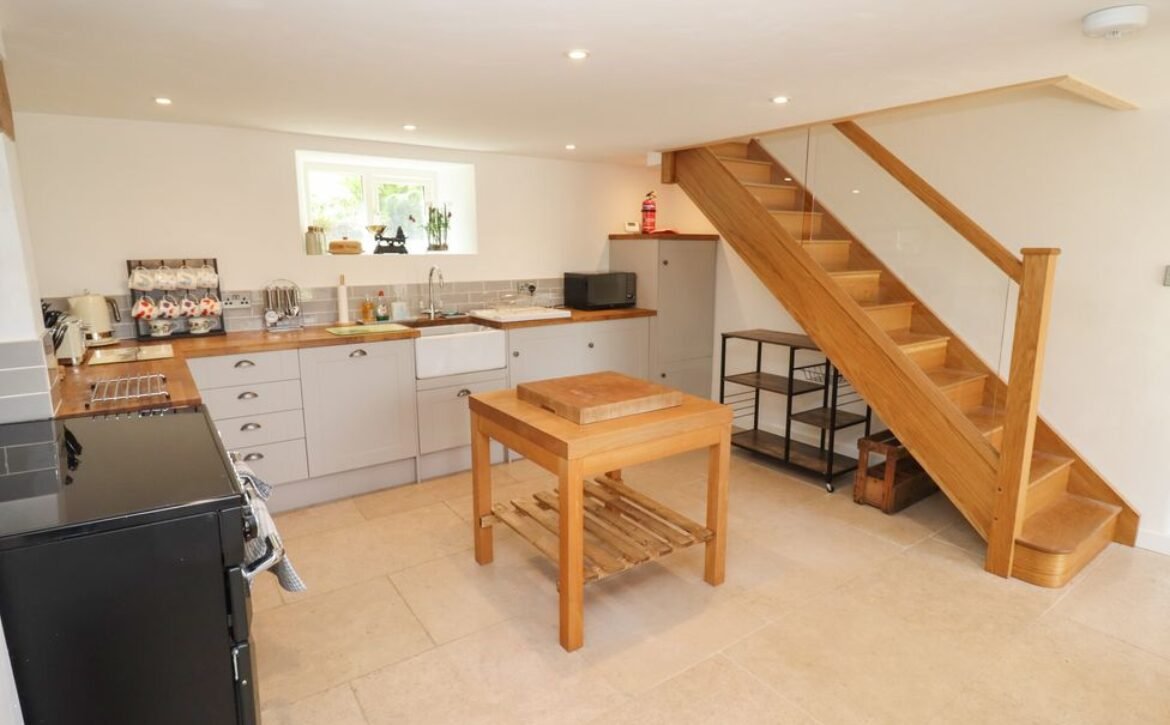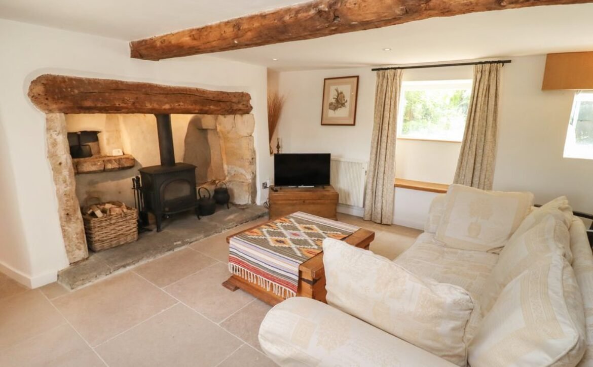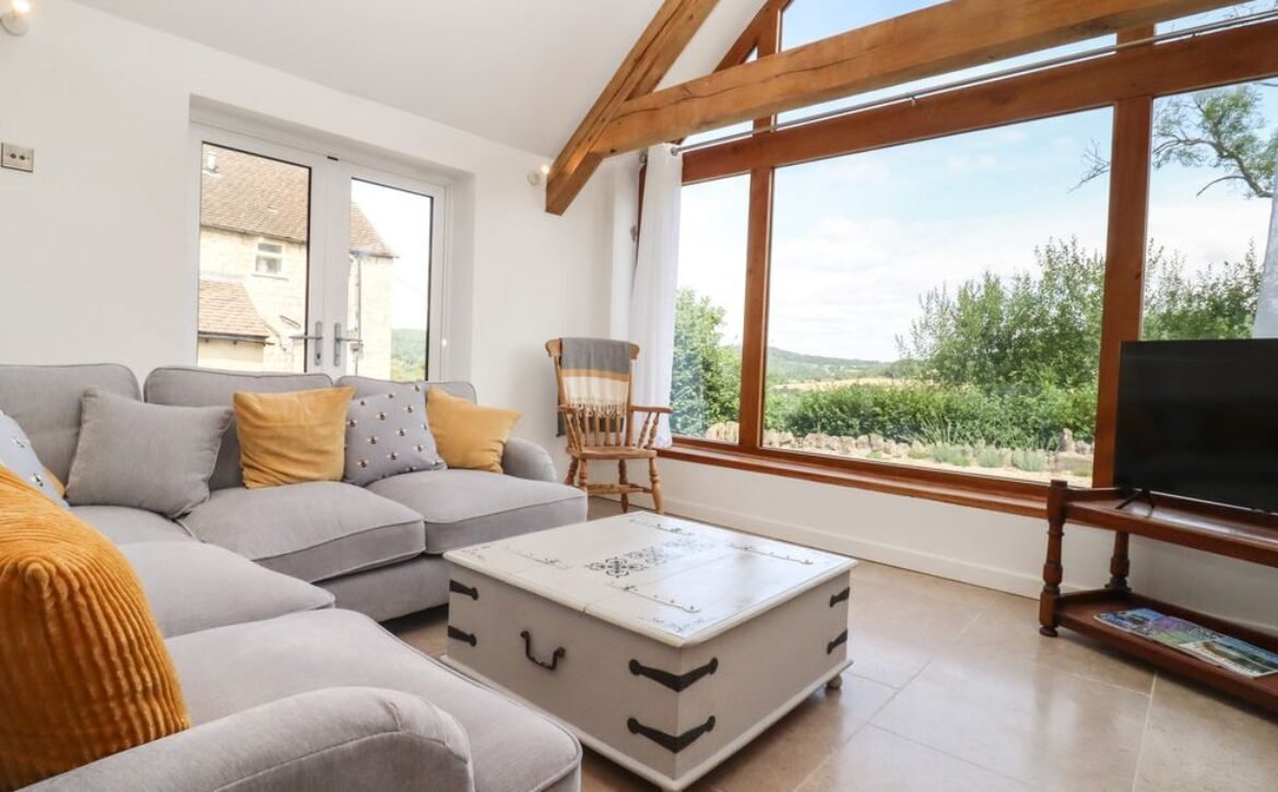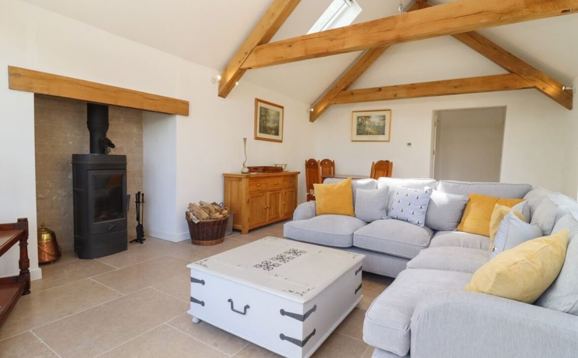 This luxurious cottage boasts off-road parking for two cars, a spacious, front gravelled garden with seating, breath-taking views of the countryside and has wooden accents and beams woven throughout: the perfect setting for a family holiday to the Cotswolds.