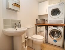 - Cloakroom with basin, WC, washing machine and tumble dryer