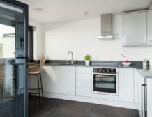 - Electric oven and hob, microwave, fridge, wine cooler, slim dishwasher, TV, WiFi