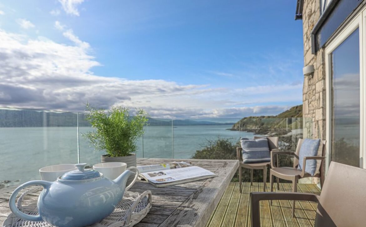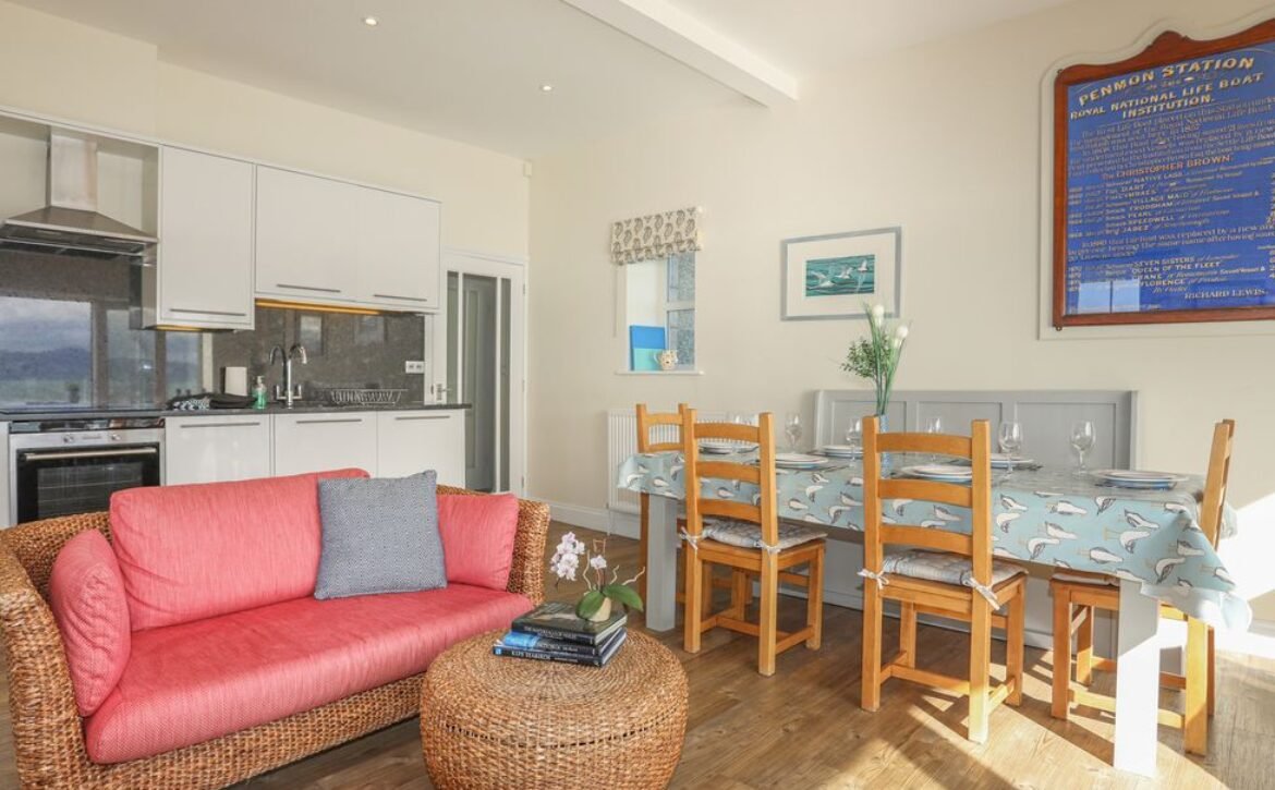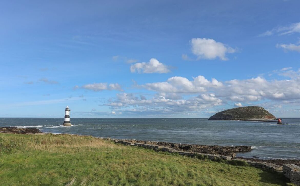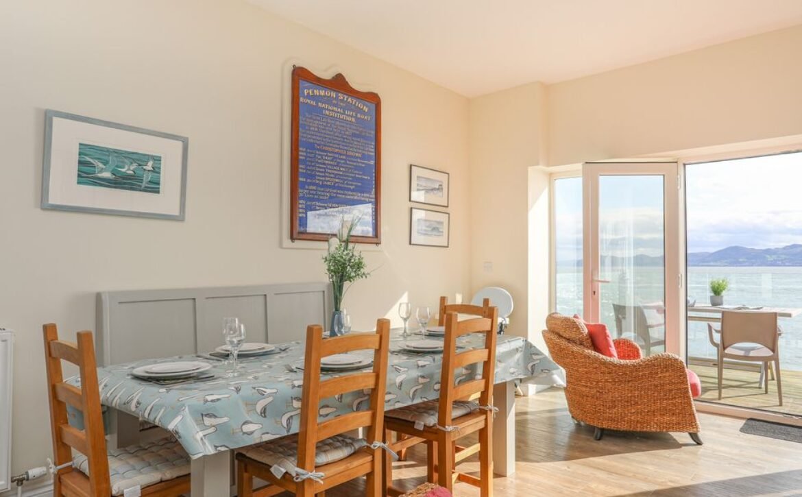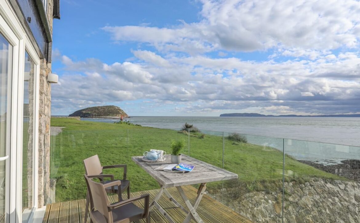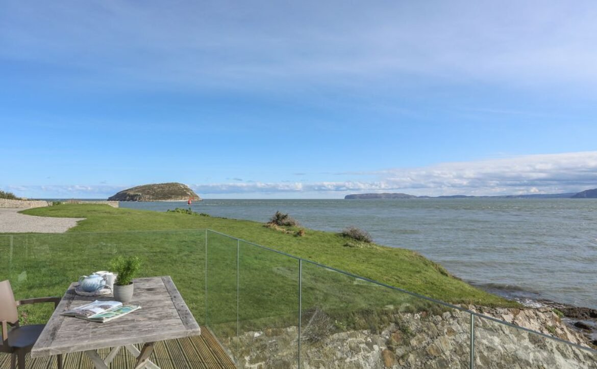 Step out onto the balcony, where the remains of the old lifeboat slipway can be seen in this beautiful south east corner of Anglesey, and hear the sound of seabirds, the salty smell of the sea and the mournful gong of Trwyn Du lighthouse.