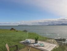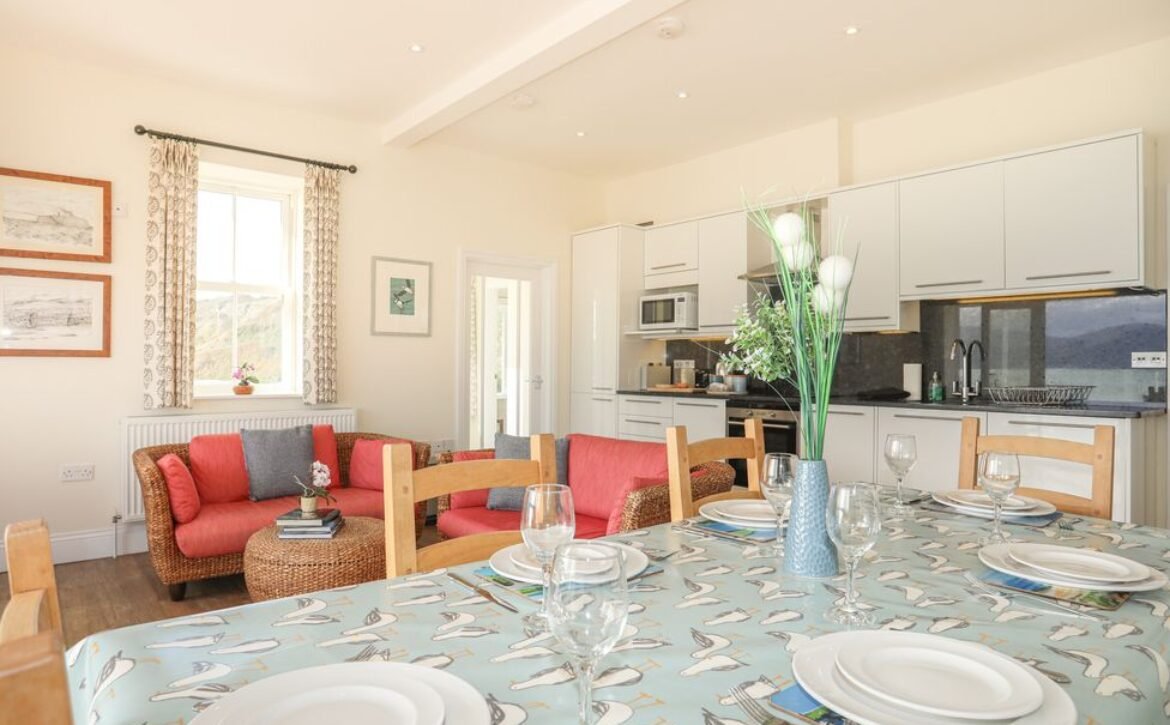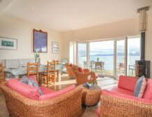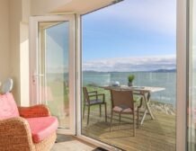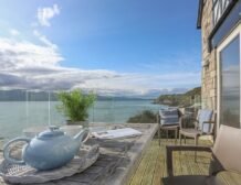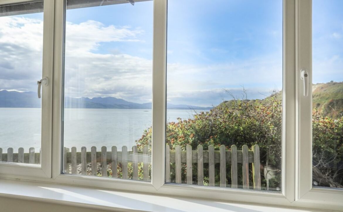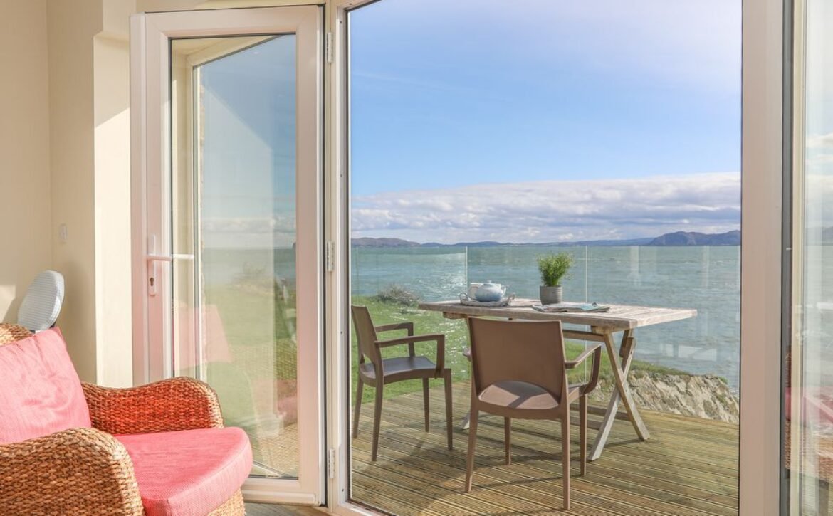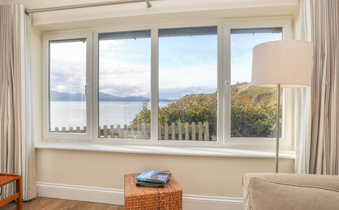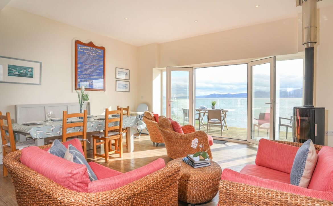 Step out onto the balcony, where the remains of the old lifeboat slipway can be seen in this beautiful south east corner of Anglesey, and hear the sound of seabirds, the salty smell of the sea and the mournful gong of Trwyn Du lighthouse.