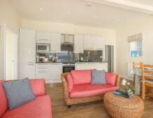 You might even be lucky enough to see a dolphin pod while relaxing on the balcony with a morning coffee or evening glass of wine. The open plan living, dining and kitchen area is a lovely bright and contemporary space.
