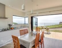 The doors make the open plan living kitchen dining space part of the outside and they allow the light to flood in, and bring the stunning views to the doorstep.