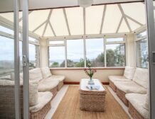 Stairs lead to a first floor, informal sitting room with wonderful views of the garden and sea, and there’s also another welcoming, first floor sitting room to relax in, a ground floor dining room and a delightful conservatory with windows on each side to make the most of the amazing views.