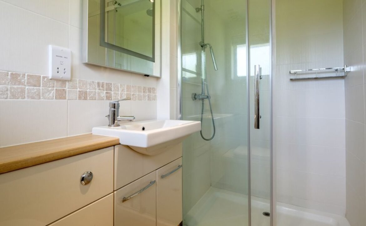 - Lower-ground-floor shower room with walk-in shower, basin and WC