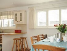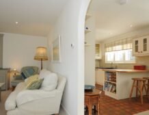 Built into the side of a hill and spread over three levels, you effectively enter the holiday home on the ground floor, walking from the hallway up a few steps to the upper ground floor into the main hub of the house, the open-plan country-cottage style kitchen and dining room, with a separate inviting sitting room.