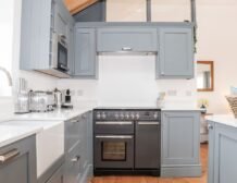 The interior of the cottage is equipped with everything you could need for a self-catering stay, with a spacious open-plan living area that comprises a kitchen, dining area and sitting area with a woodburning stove.