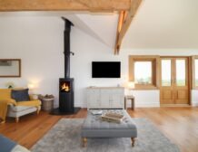 From here, huge windows take full advantage of the vast views, so you can relax and admire the scenery while the woodburning stove warms the space.