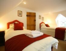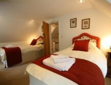 - Three bedrooms: 1 x King size double bed (5ft), flatscreen TV, ensuite shower room with shower, WC and washbasin, 1 x double bed (4ft 6in), 1 x twin