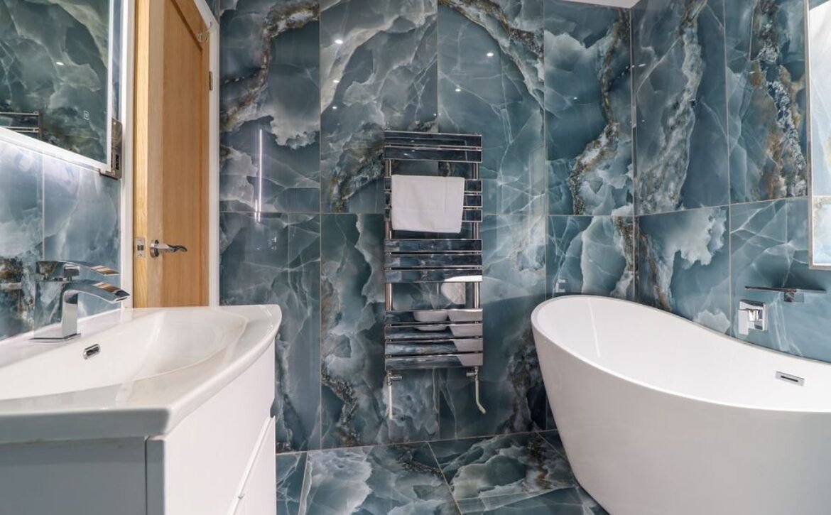 At the threshold, be welcomed by the feature oak outdoor porch, you will be delighted by the tastefully-presented contemporary interior with the perfect blend of blues and greys, all while the under-floor heating creates ambiance at every corner.