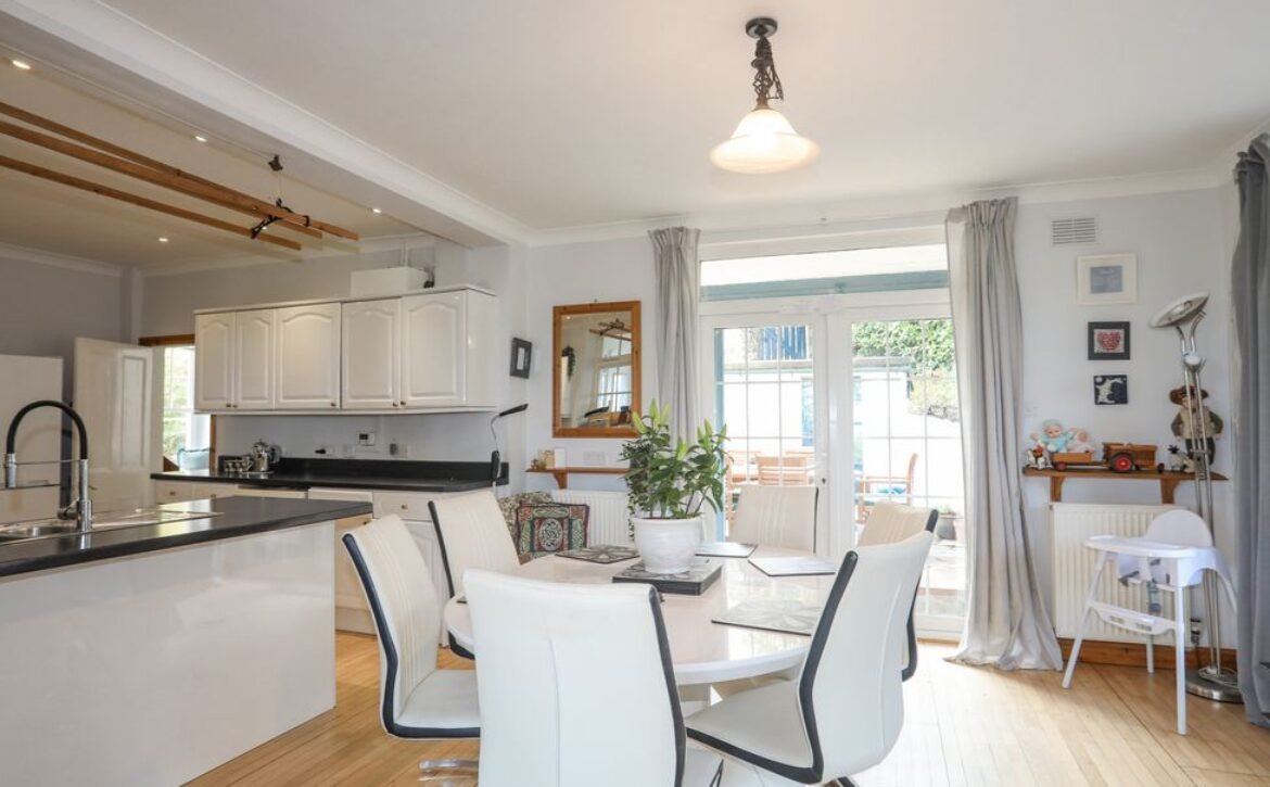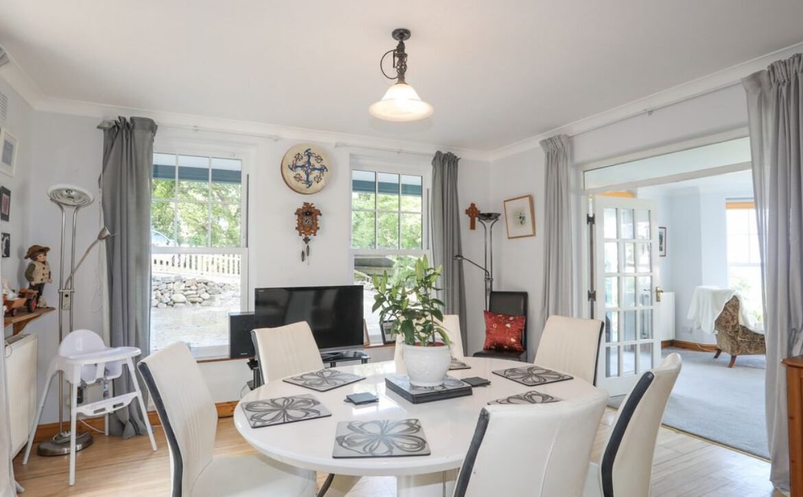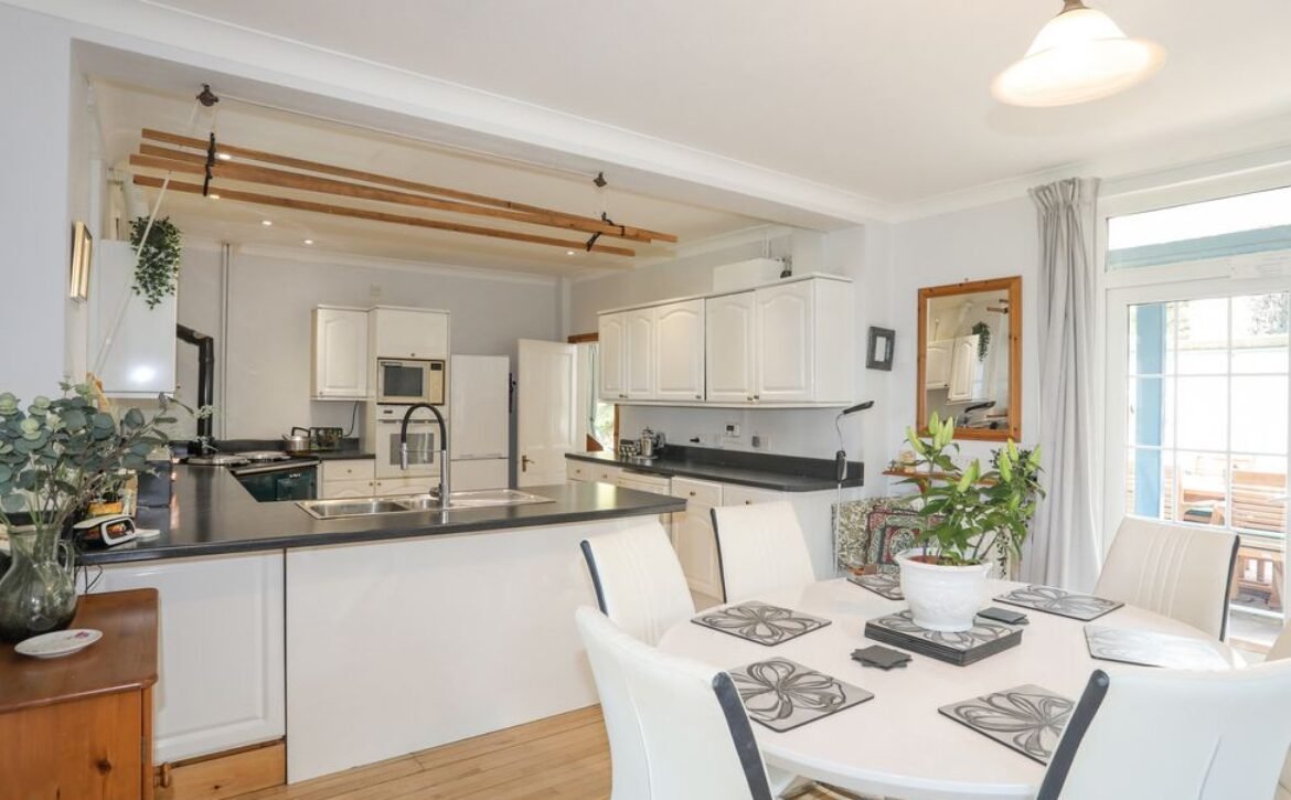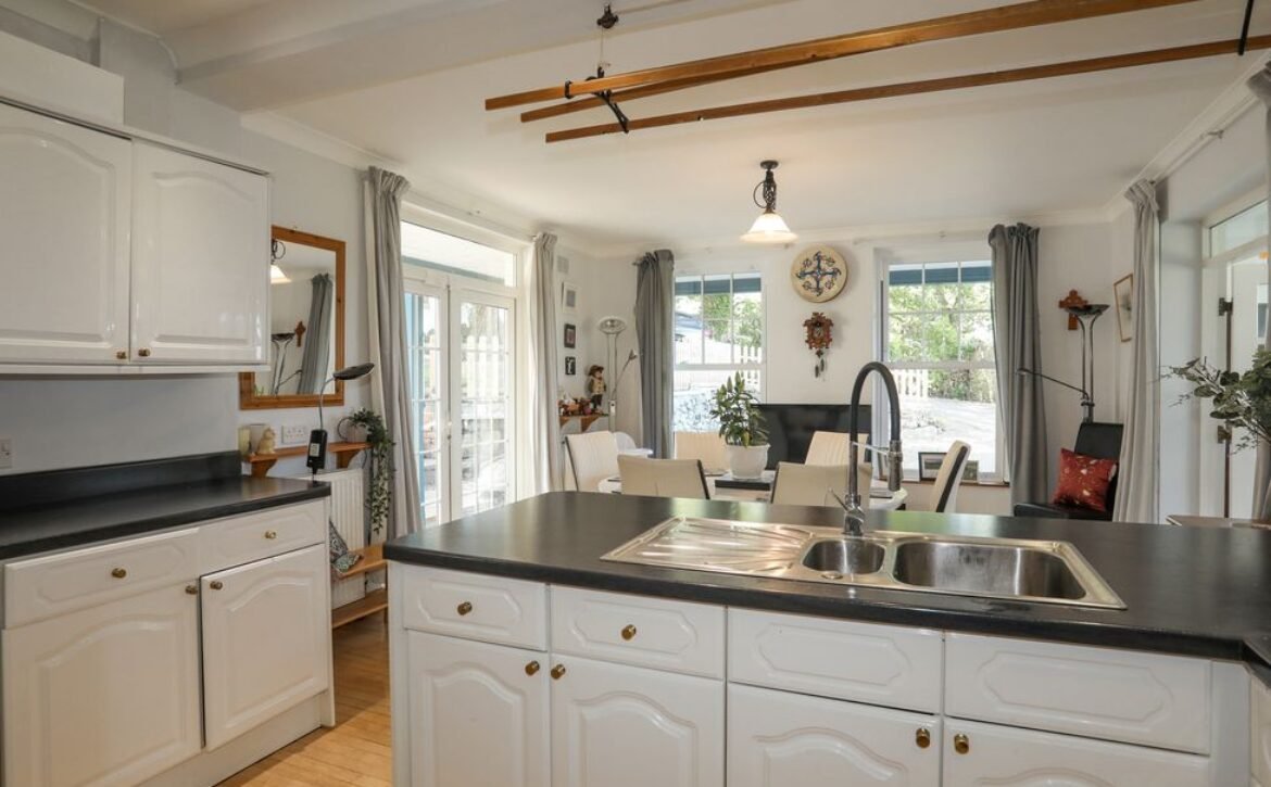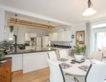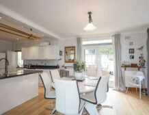 - Open-plan living space with kitchen, dining area and sitting area