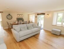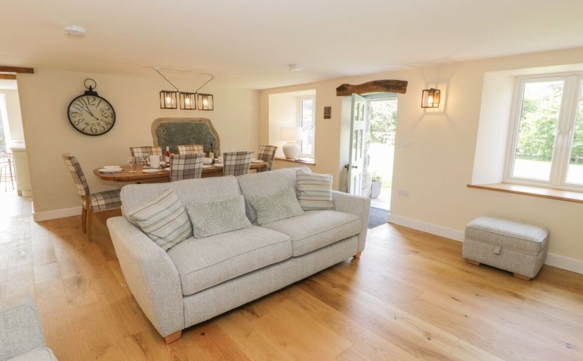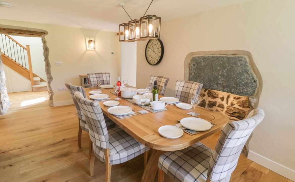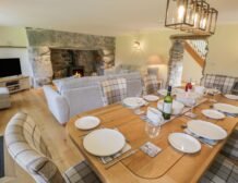 Enjoy relaxing with your loved ones amidst in the lovely open-plan living room with a plush sitting area home to two sofas facing towards the huge stone inglenook fireplace which houses the woodburning stove, and the fantastic Smart TV.
