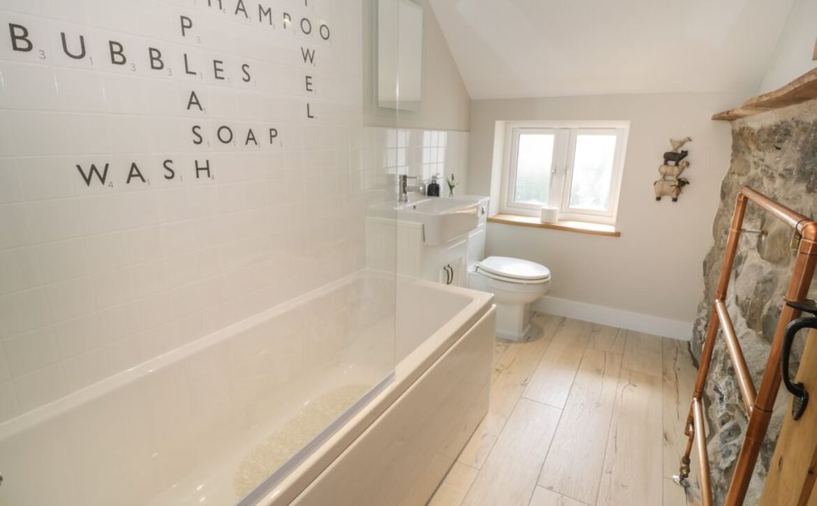 Completing the layout is the excellent family bathroom with a bath and shower over, featuring an exposed stone wall and a vintage-style radiator to keep your towel toasty.