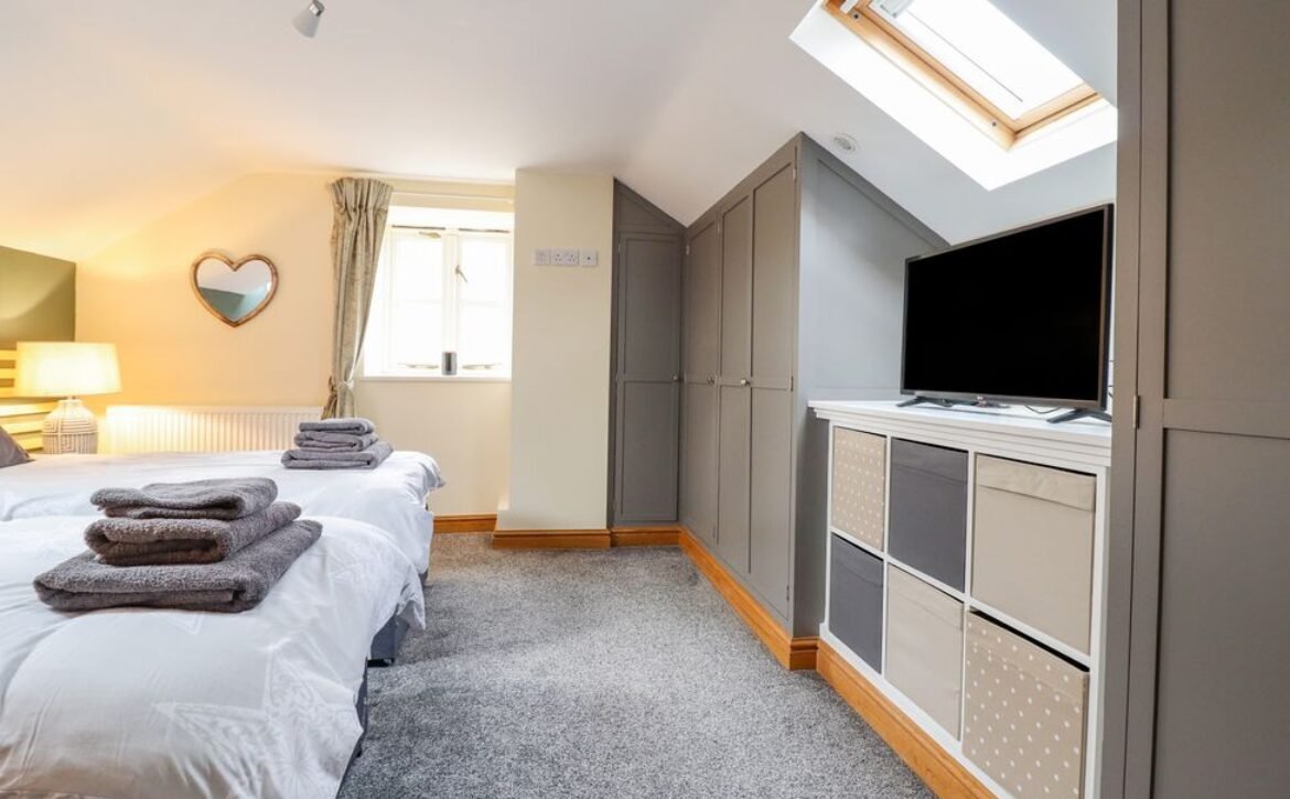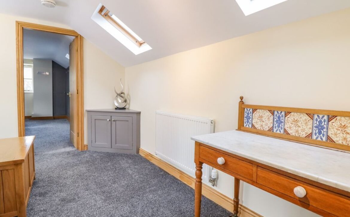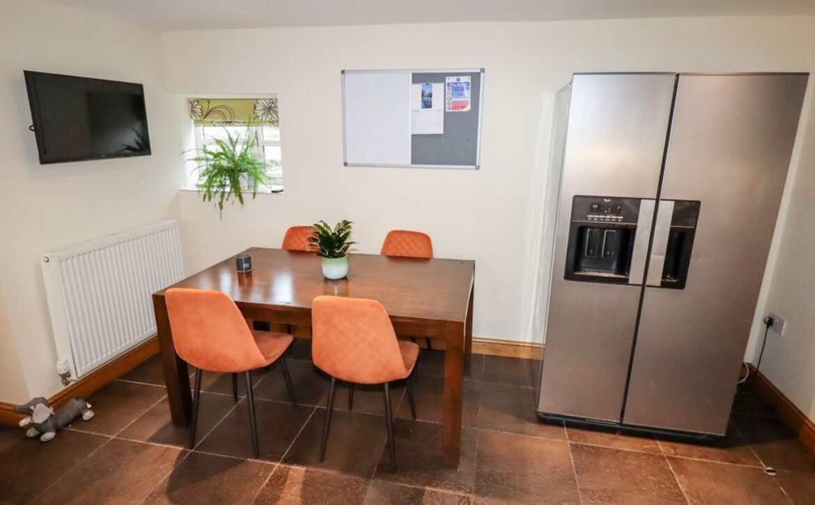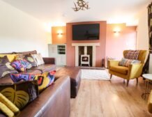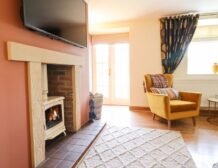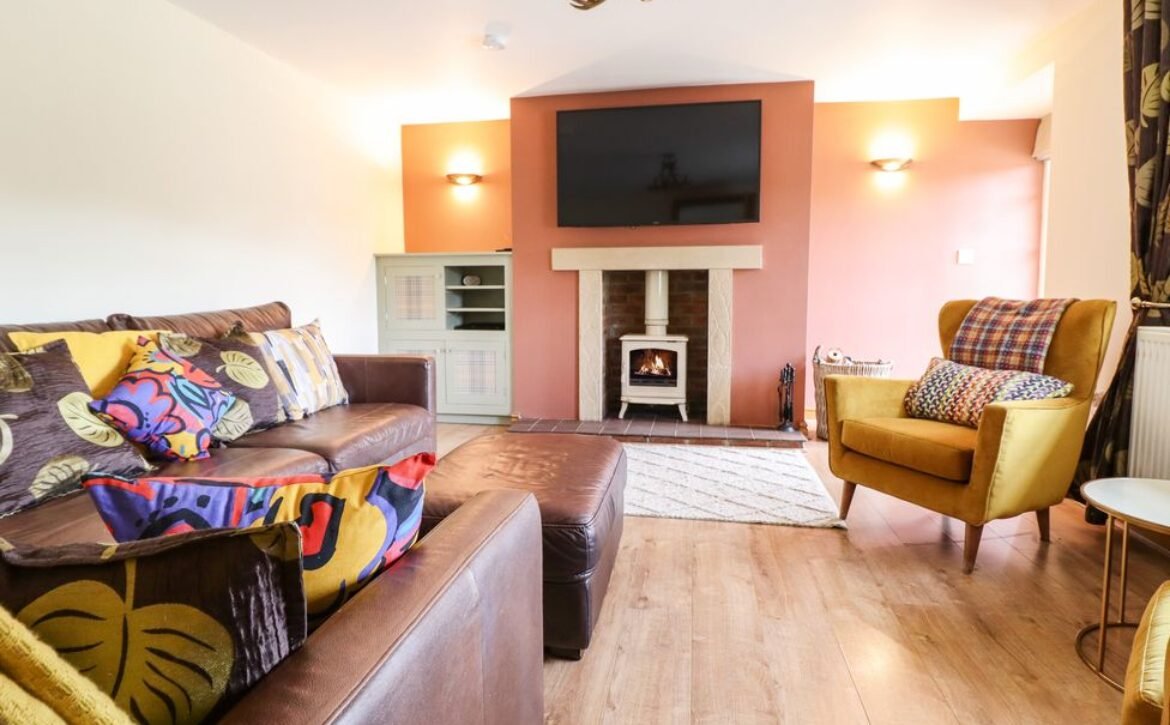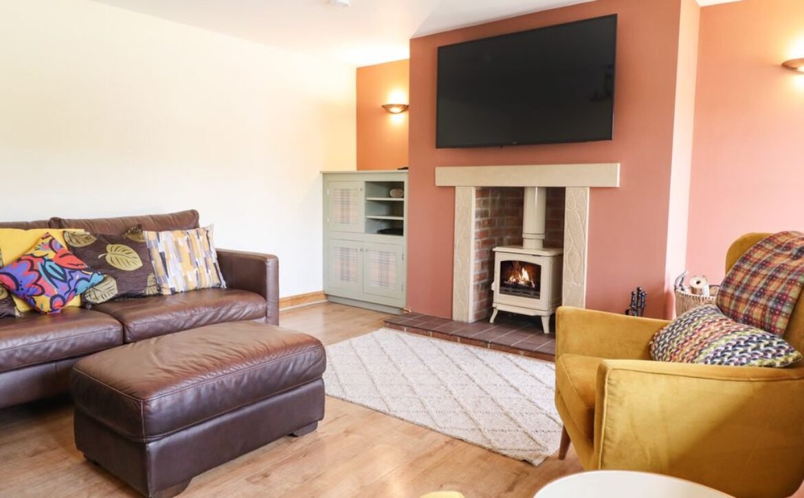 Head into the inviting sitting room, featuring a splash of colour, a charming woodburning stove and a wall-mounted Smart TV, ideal for retreating to after a day of adventure.