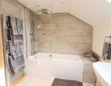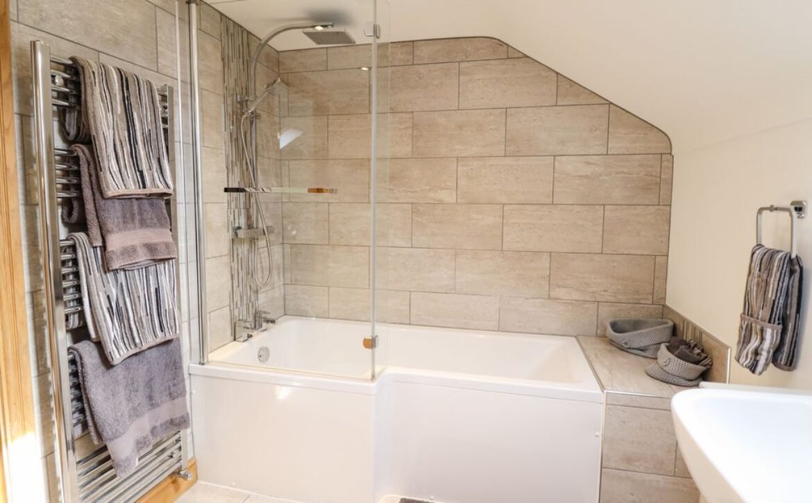 Prepare for exploring the village, the picturesque Dee Valley, and the county by taking advantage of the sleek bathroom, featuring both a bath and a shower to meet your personal preferences.