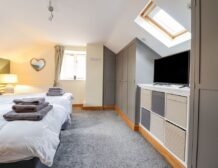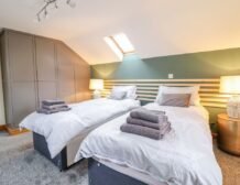 When sleep calls, head upstairs to select between the super-king-size (zip/link), and the king-size bedrooms, both well-presented, furnished with storage which sets the scene for a restful stay; the king-size also features a canopy balcony, perfect to sit upon with your morning coffee.