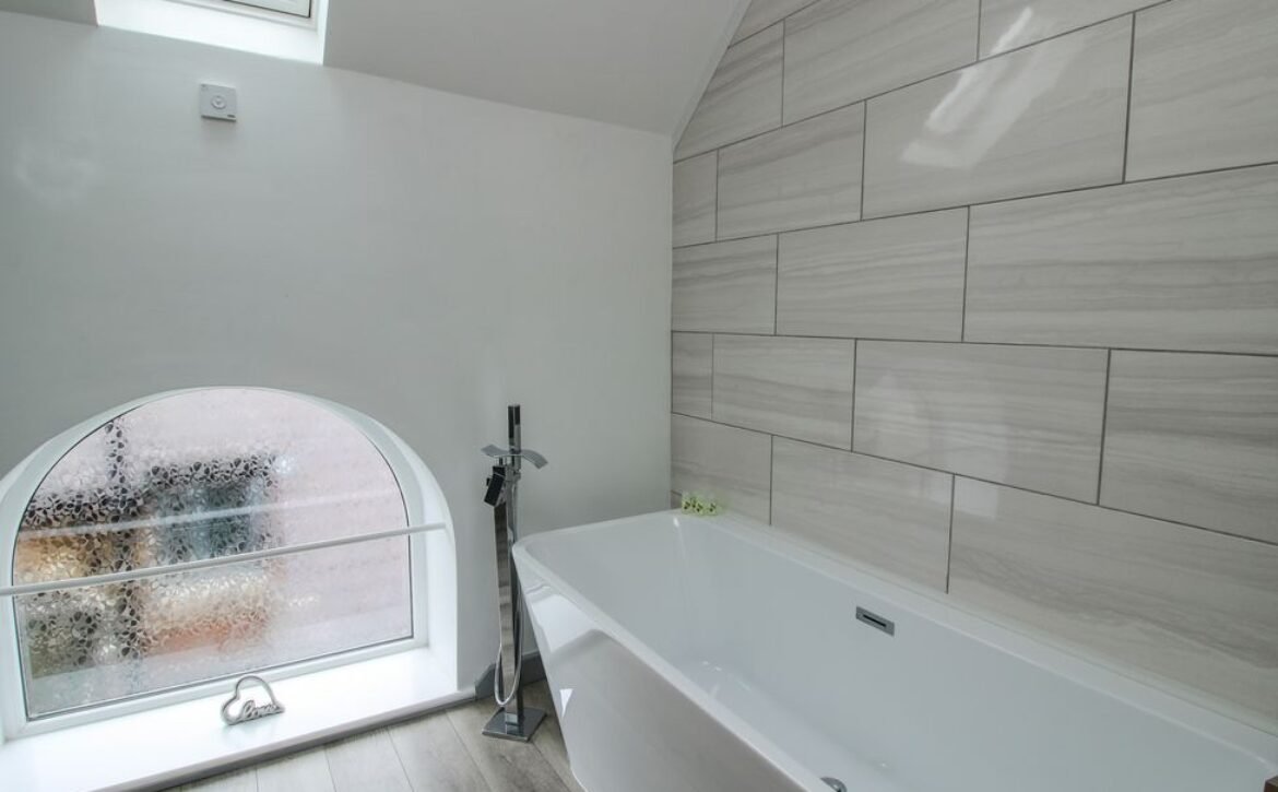 A welcoming bathroom with a feature bath perfect for a long soak after a day of walking completes the first floor.