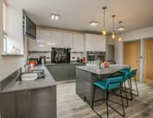 - Electric twin ovens and induction hob, microwave, fridge/freezer, washing machine and tumble dryer, dishwasher and coffee machine